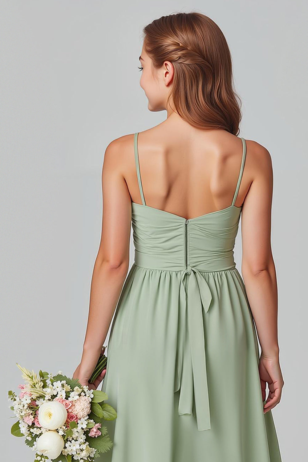 Sage Green Spaghetti Straps A-Line Chiffon Long Junior Bridesmaid Dress
