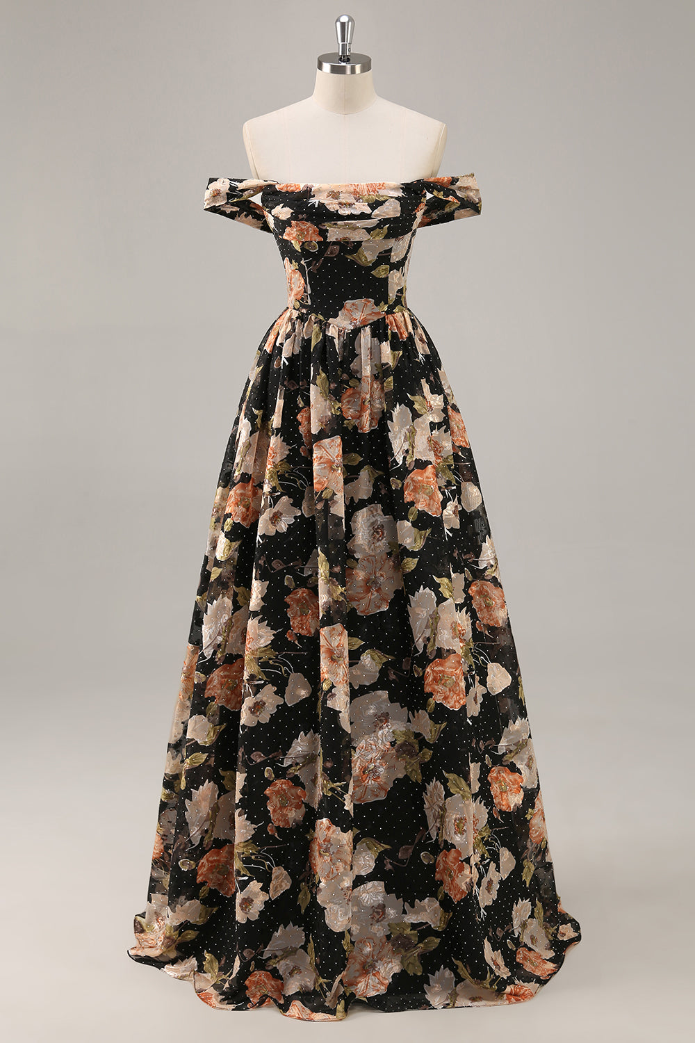 Sparkly Black Floral Ruched Long Bridesmaid Dress with Beading