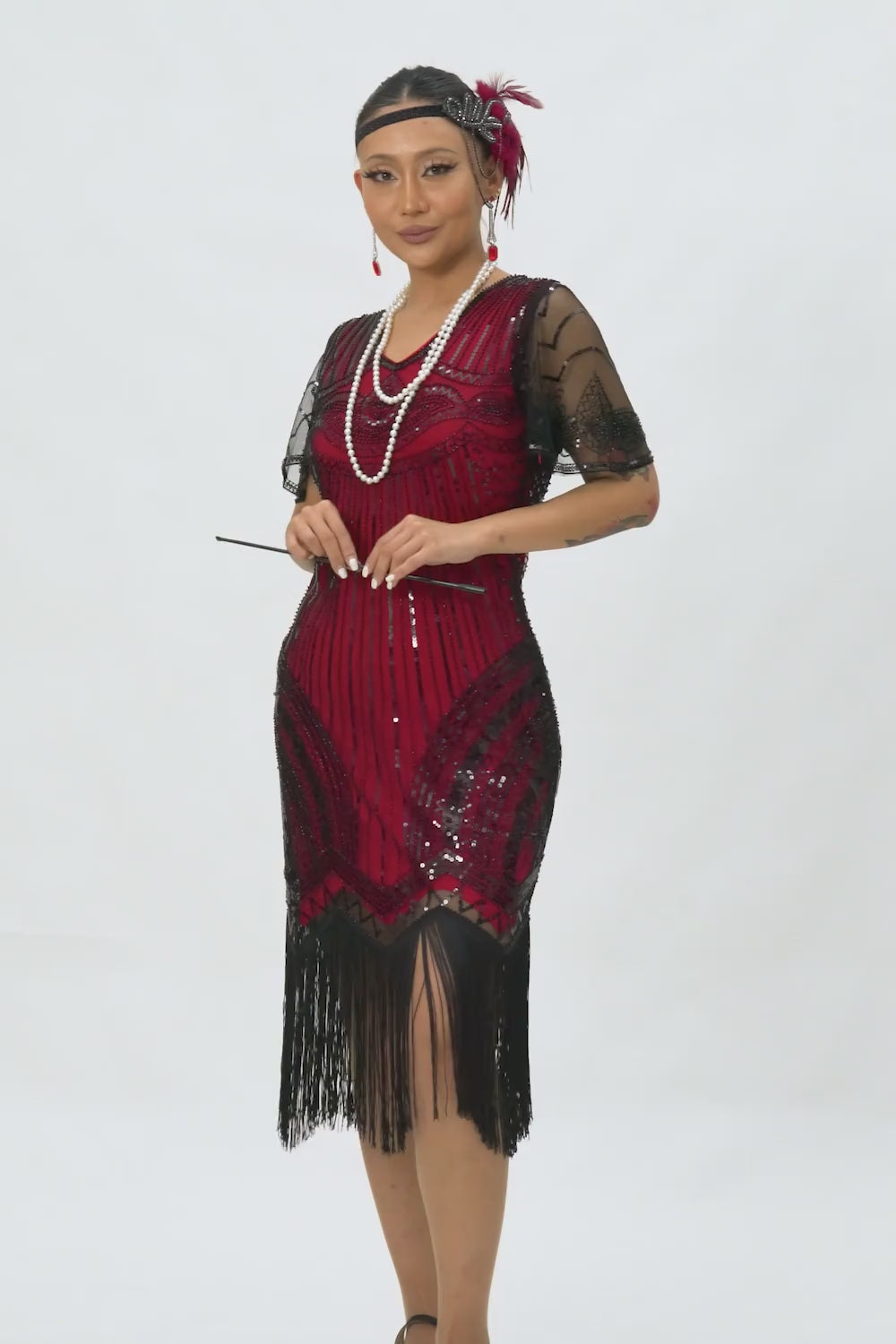 Sparkly Black Red Bodycon Fringed Short 1920s Dress With Fringes
