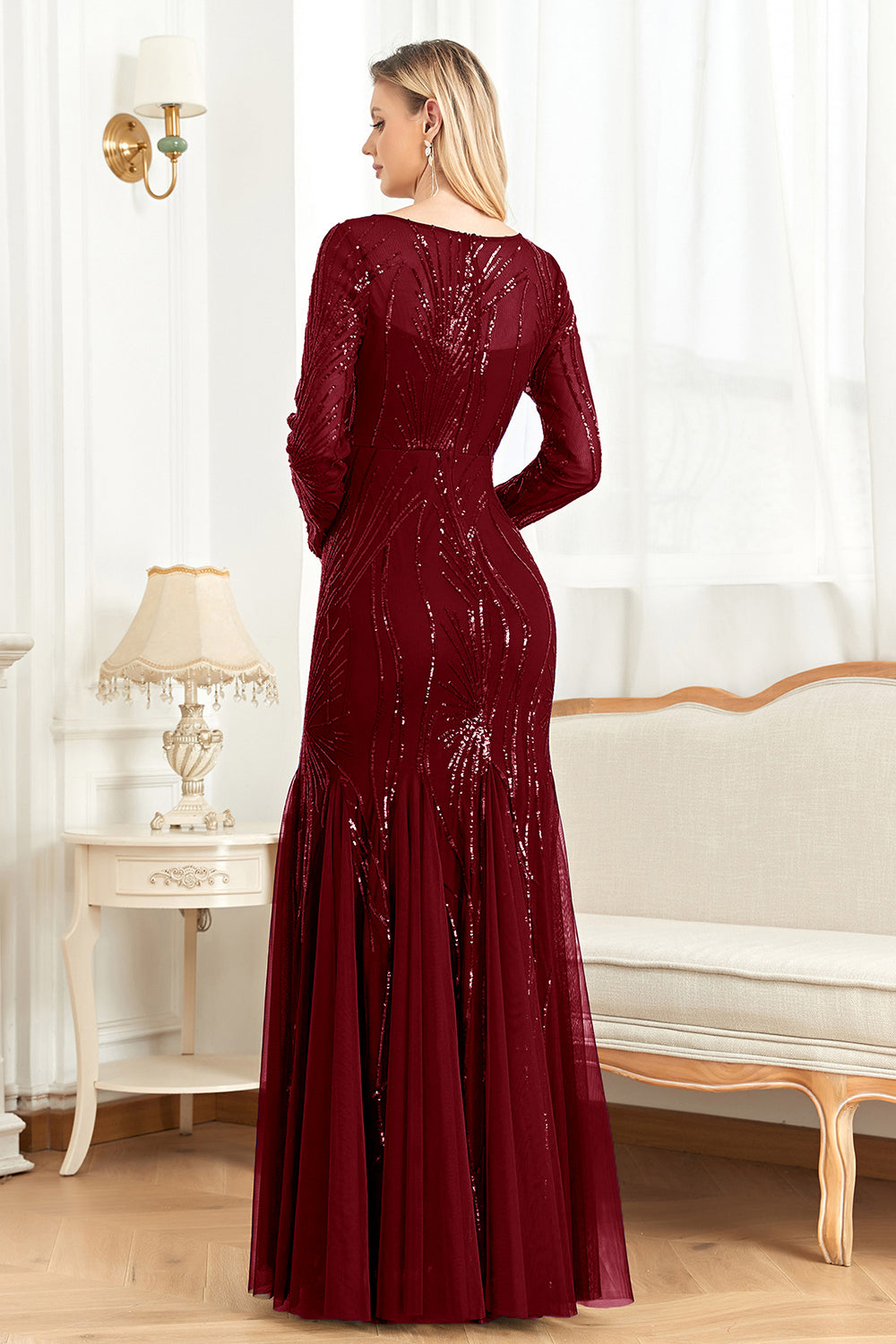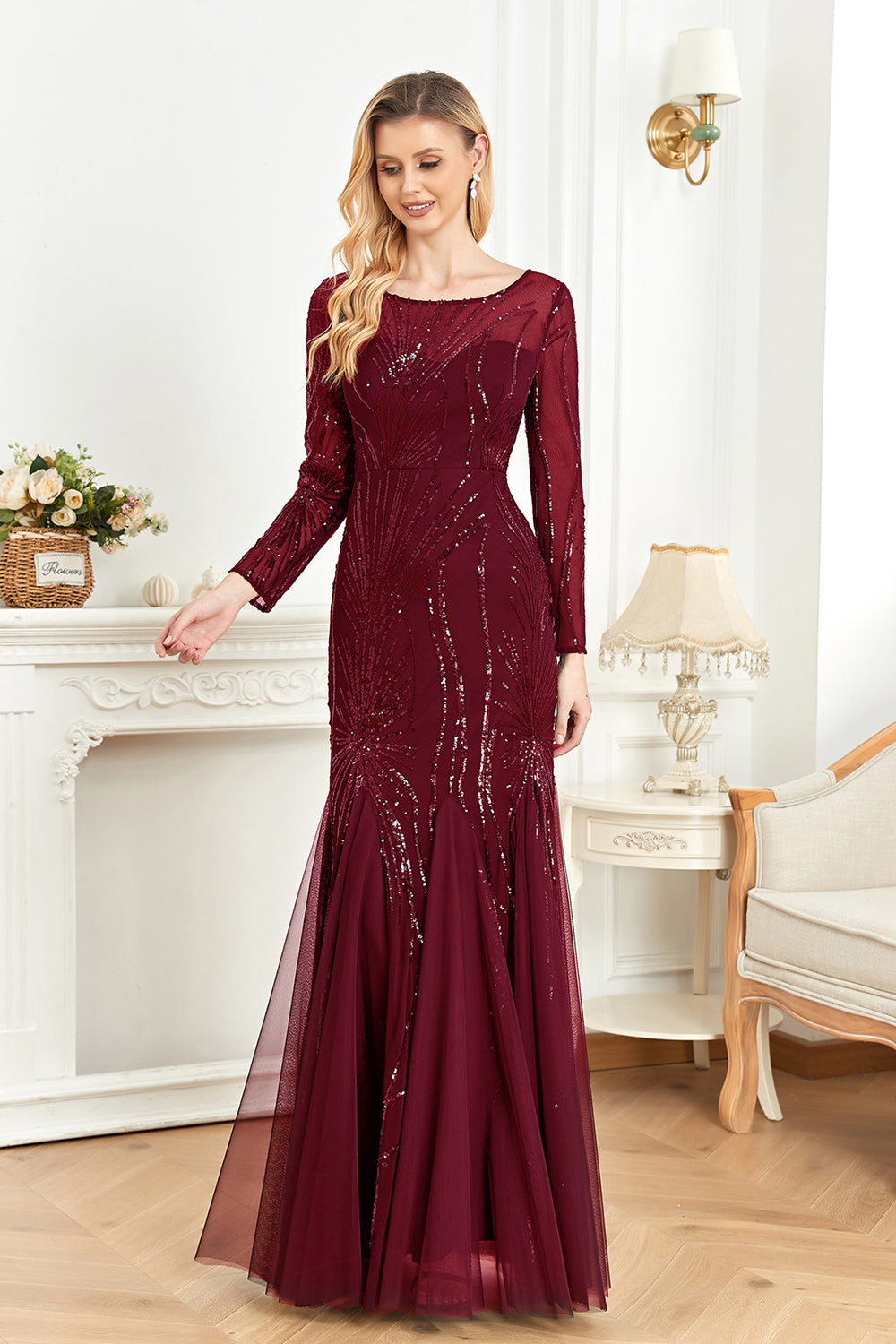 Sparkly Ink Blue Appliques Beads Long Sleeves Round Neck Mother Of The Bride Dress