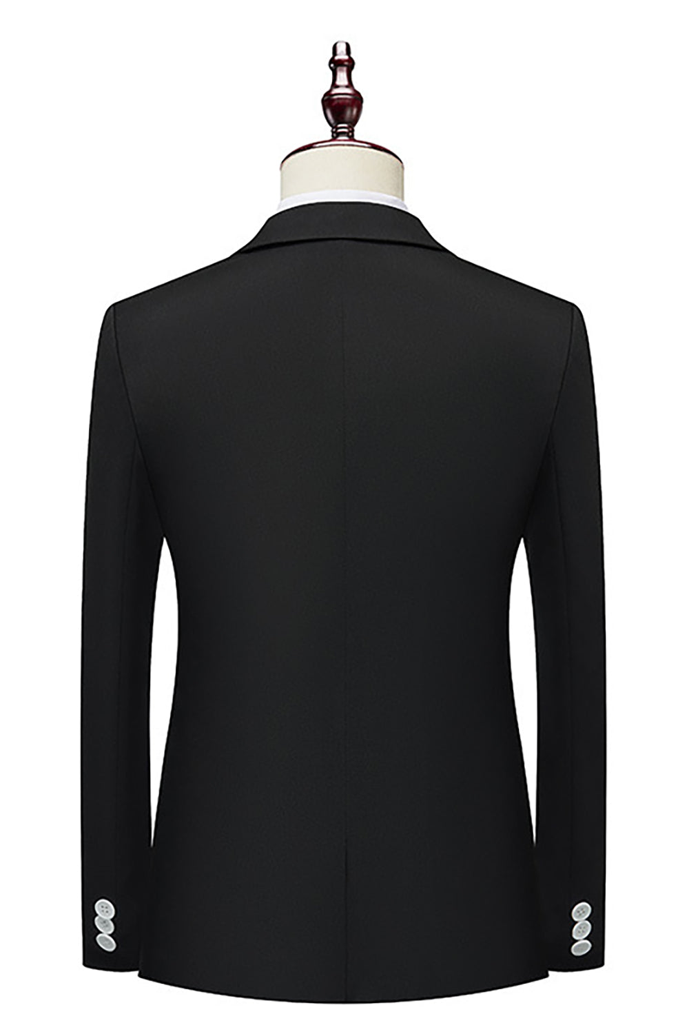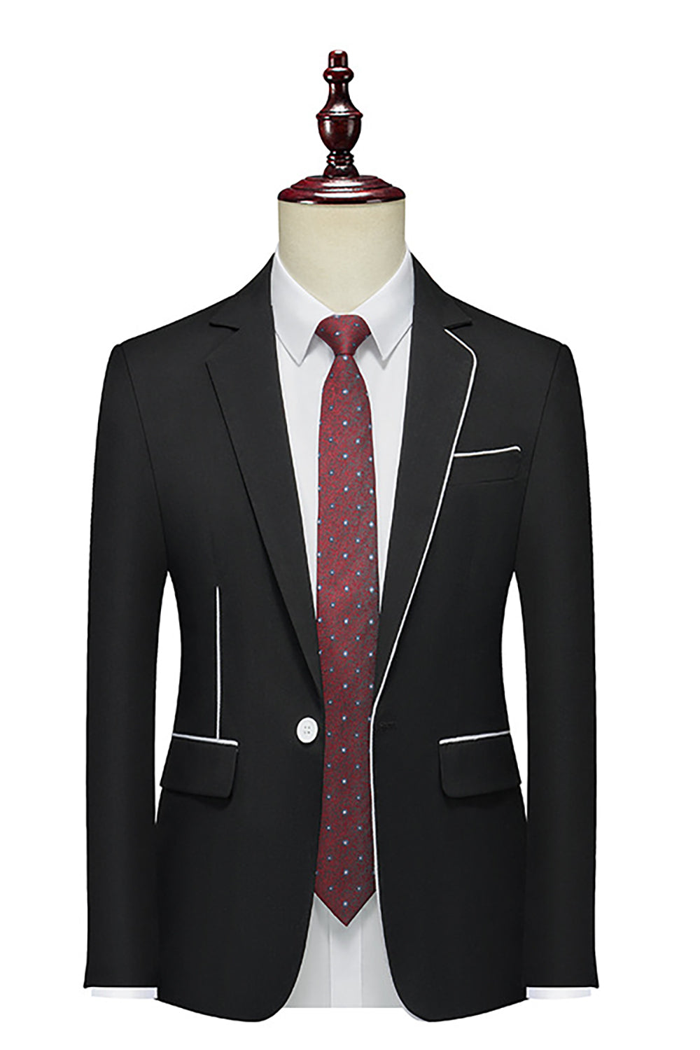 Notched Lapel Slim Fit One Button Black Men's Business Blazer