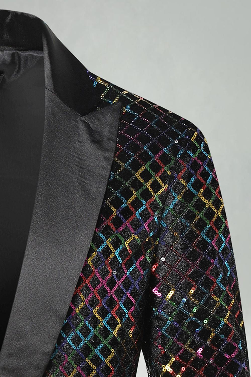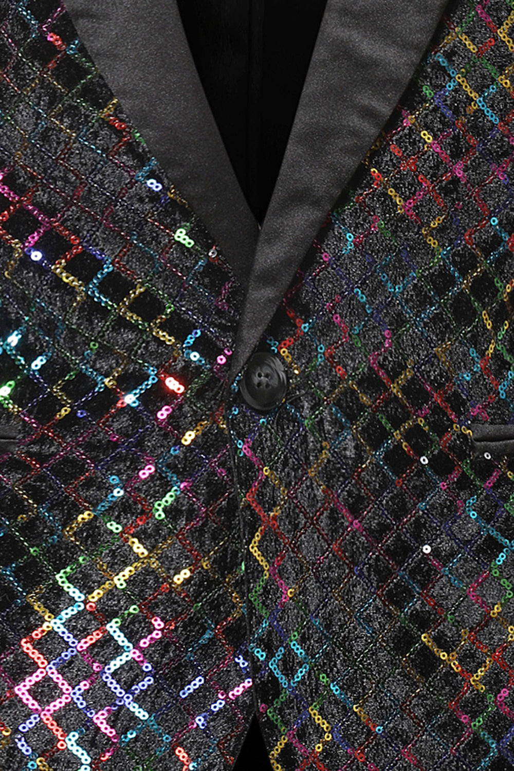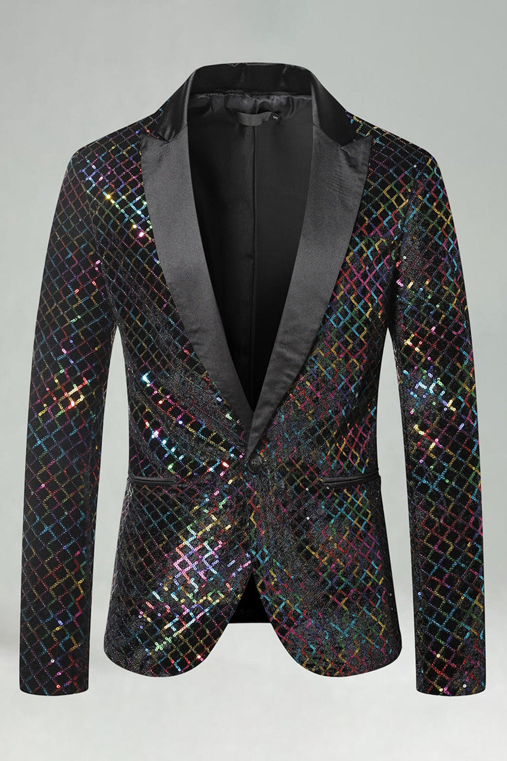 Peak Lapel Colorful Sequin One Button Men's Prom Blazer