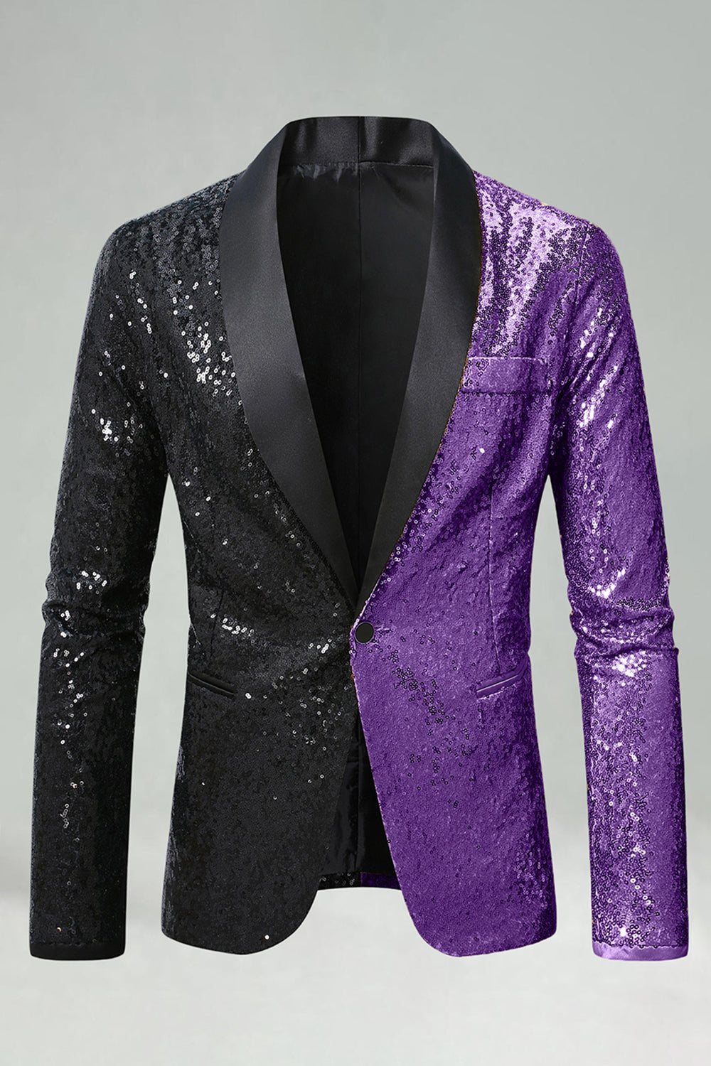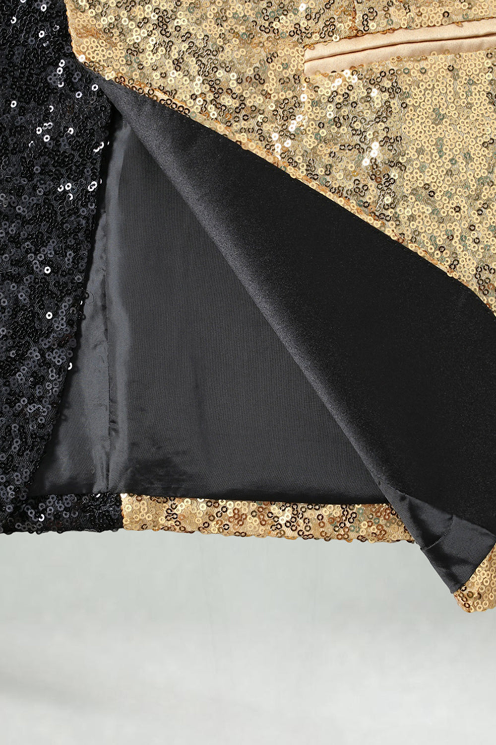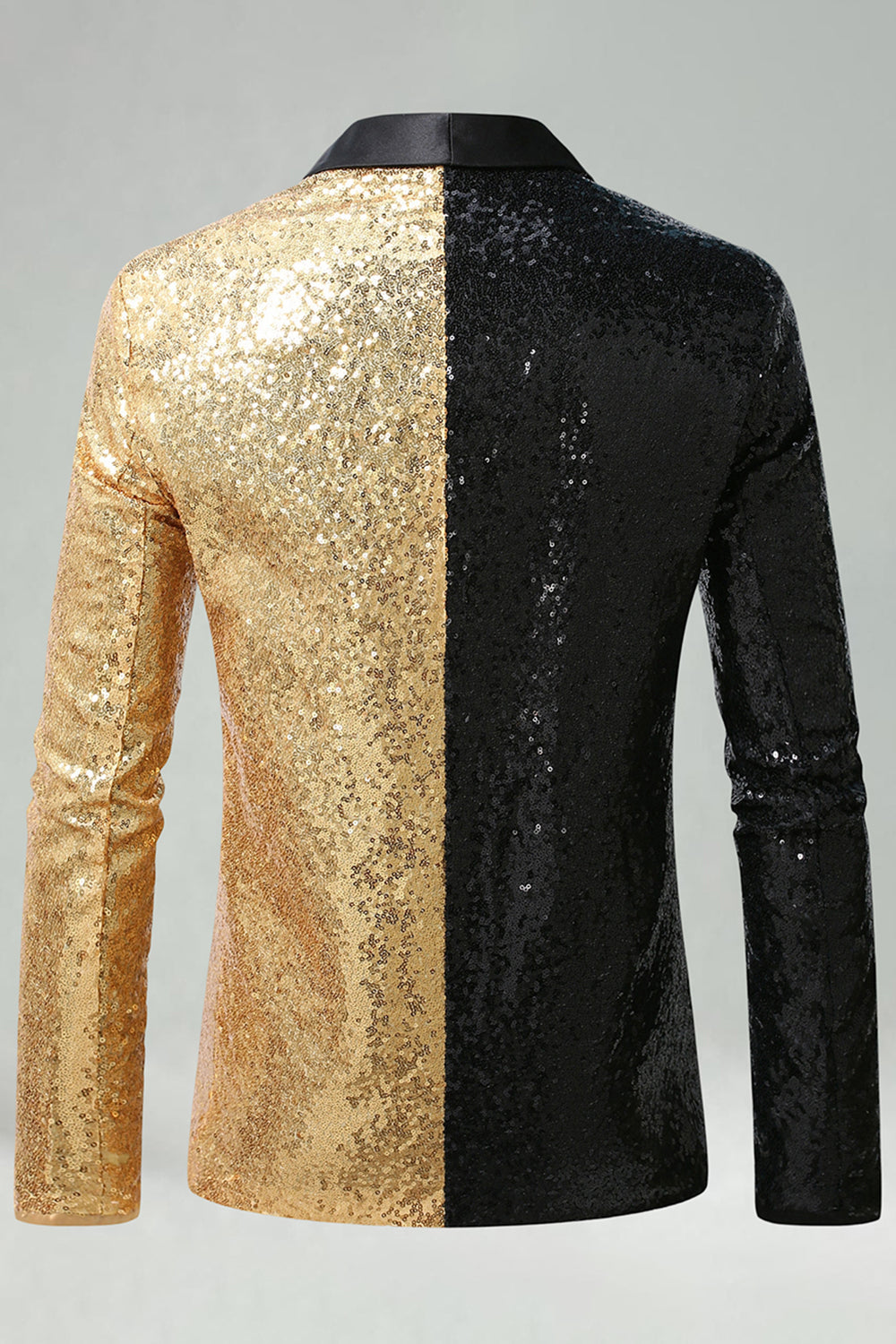 Sparkly Black Golden Shawl Lapel Single Buckle Men's Prom Blazer