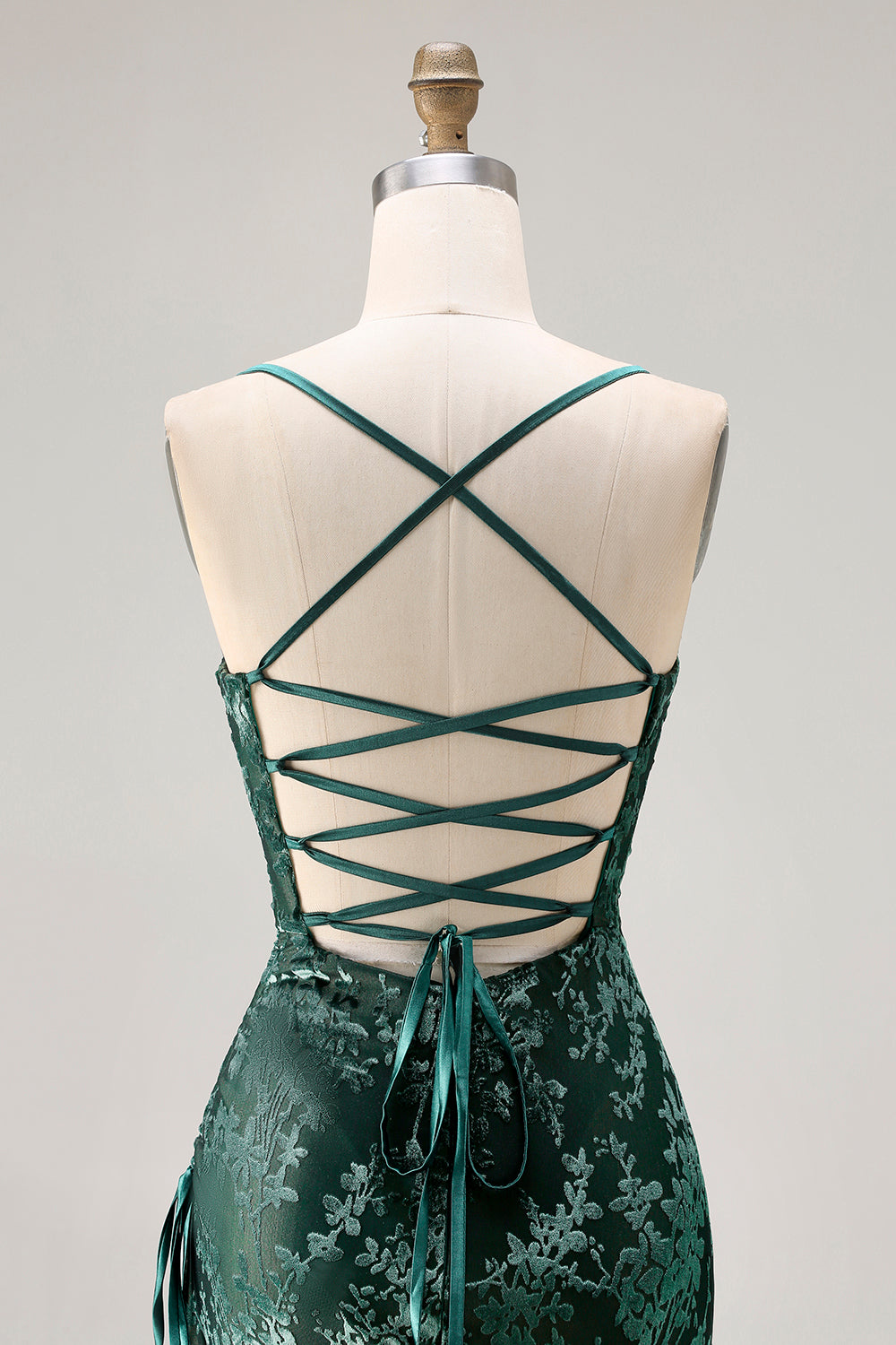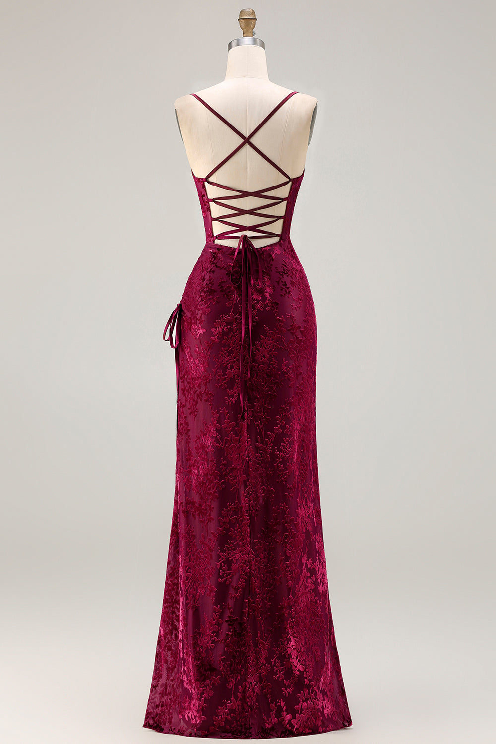 Dark Green Velvet Sheath Velvet Burnout Long Prom Dress