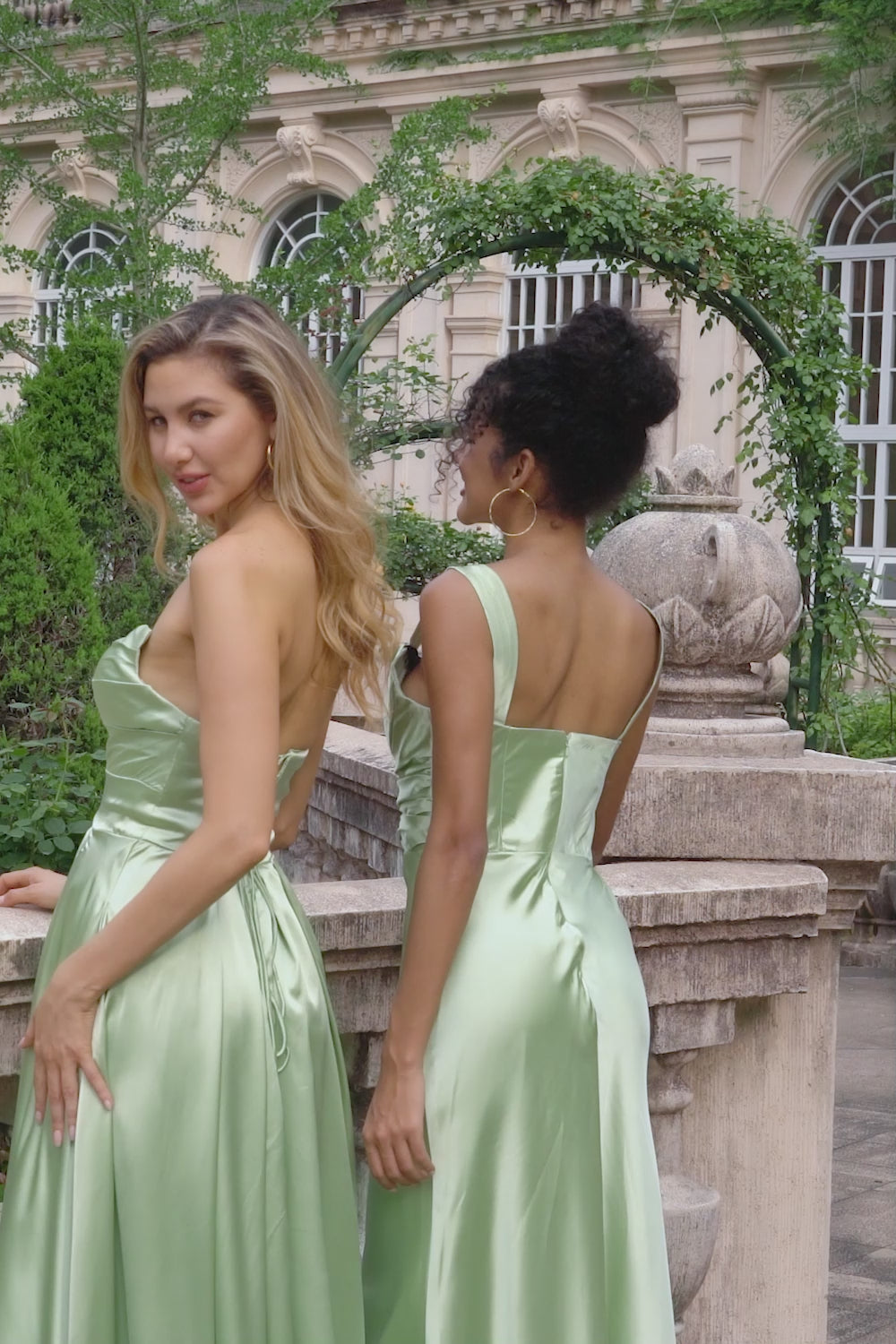 Green A Line Pleated Strapless Keyhole Long Bridesmaid Dress With Slit