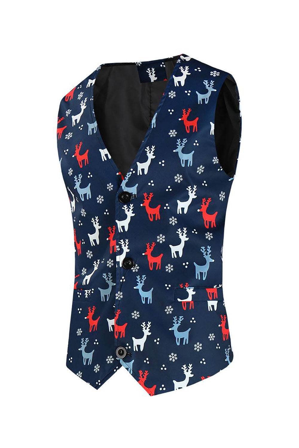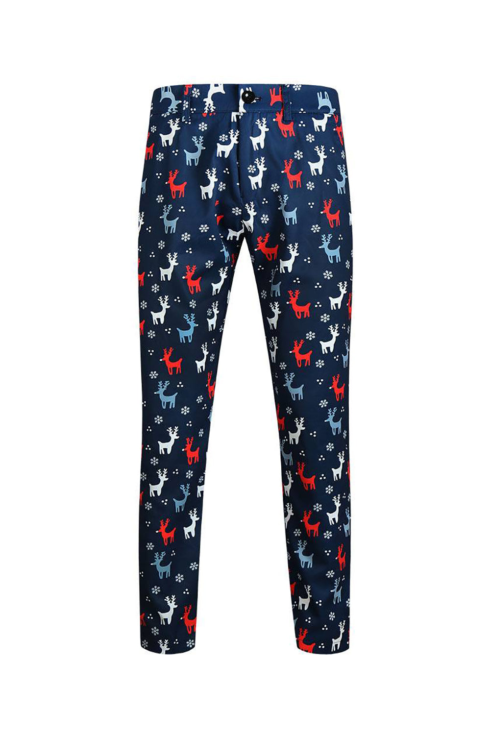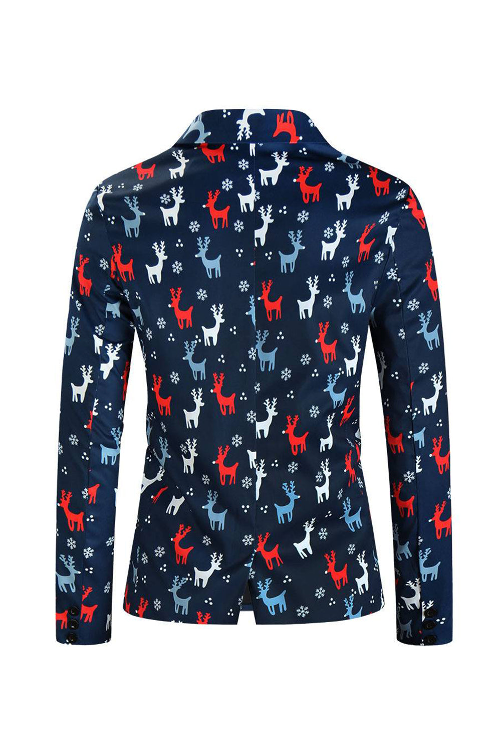 Notched Lapel One Button Elk Dark Blue Christmas Men's Suits