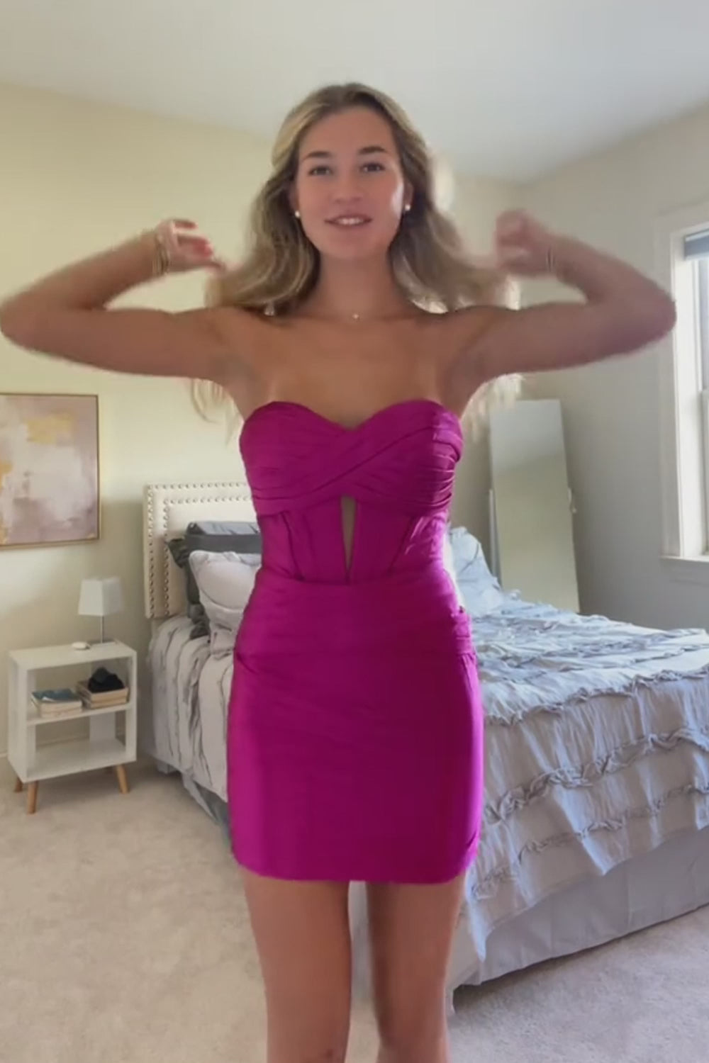 Fuchsia Bodycon Sweetheart Satin Corset Short Graduation Dress