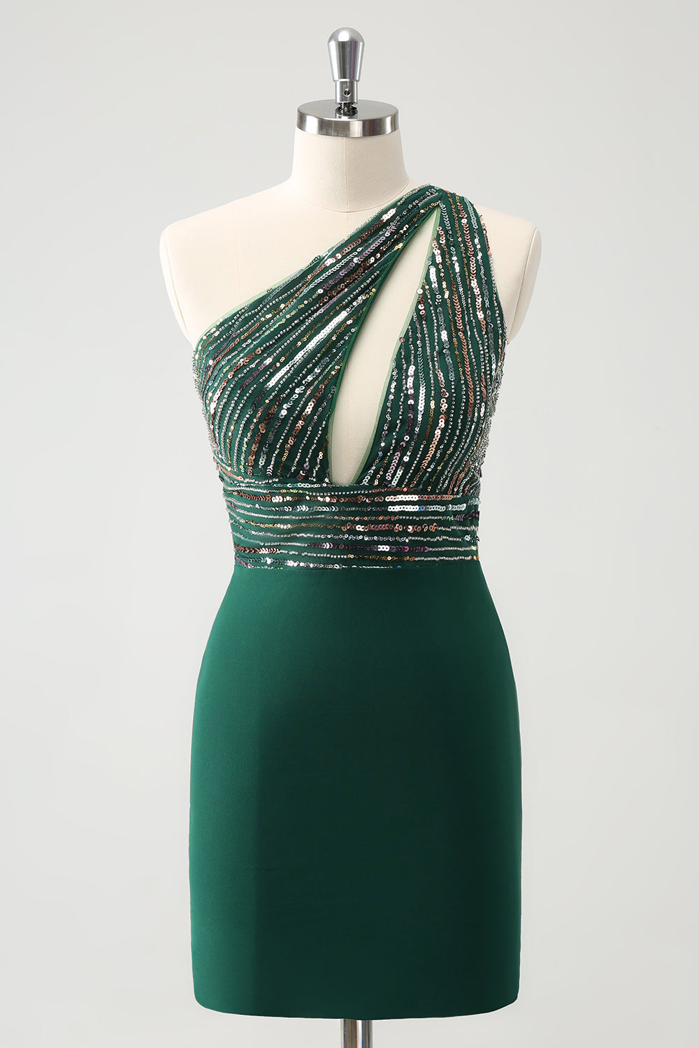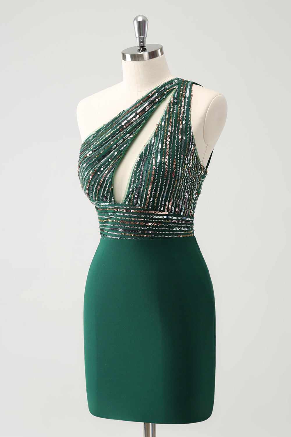 Glitter Dark Green Tight One Shoulder Cut-Out Graduation Dress