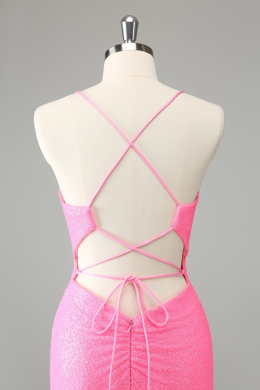 Stylish Glitter Black Sequins Tight Graduation Dress with Lace Up Back