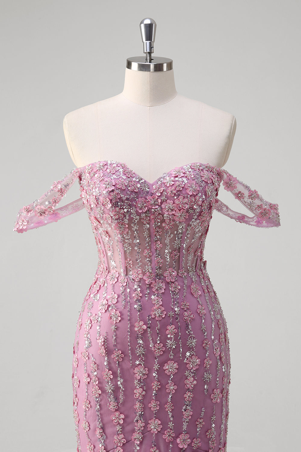 Grey Purple Mermaid Off The Shoulder Appliqued Corset Long Prom Dress With Tulle