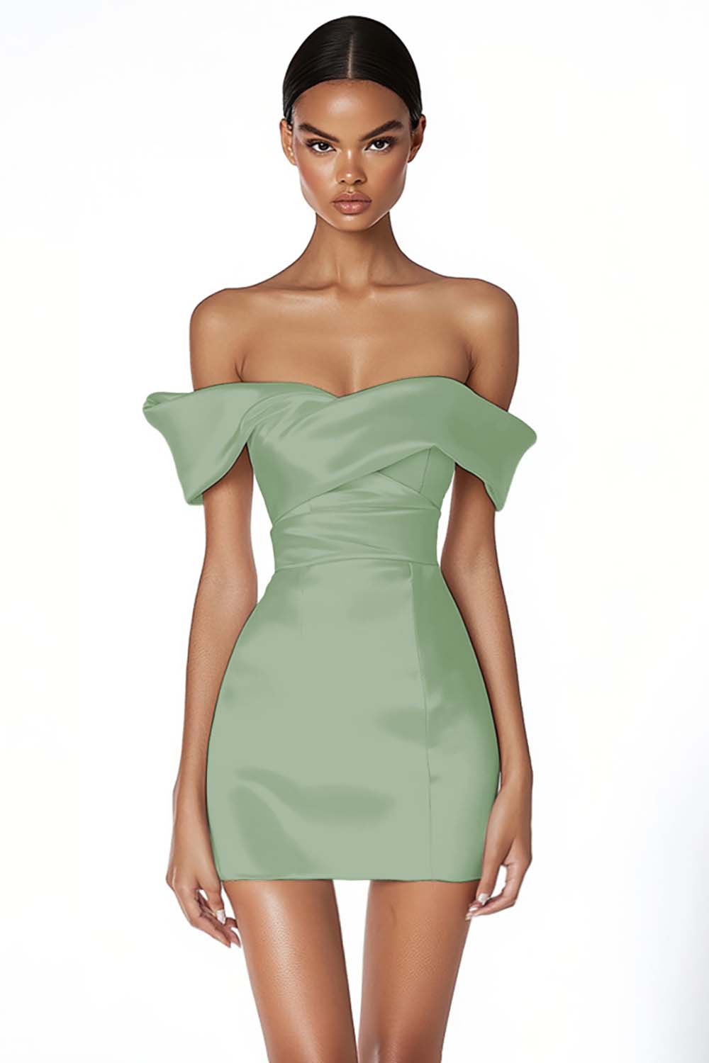 Off The Shoulder White Satin Bodycon Graduation Dress