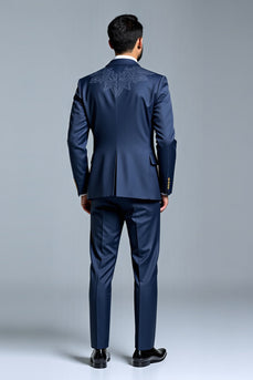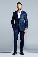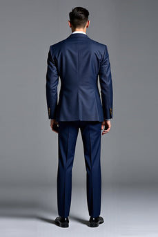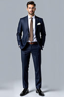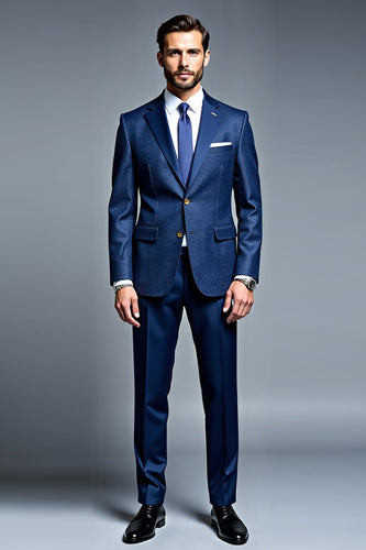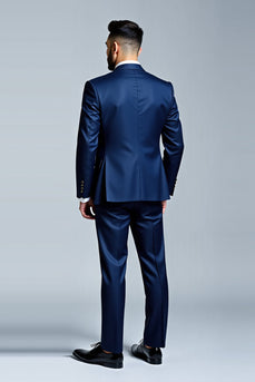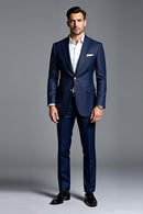 Dark Blue 2-pieces Single Breasted Lapel Slim-fit Men's Suit