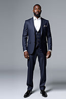 Navy 3 Piece Notched Lapel Pinstripe Men's Suit