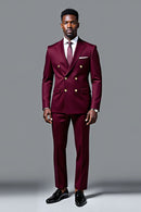 Burgundy Double Breasted Notched Lapel Men's Prom Suits