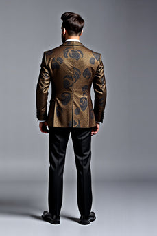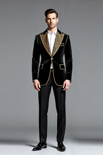Men's Black One Button 2 Pieces Peak Lapel Formal Suits