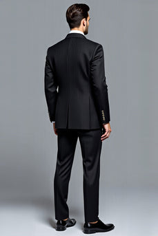 Men's Black Double Breasted 2 Pieces Peak Lapel Prom Suits