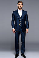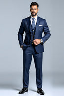 Dark Blue Notched Lapel 3 Pieces Men's Party Suits