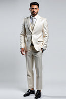 Casual Khaki Notched Lapel Slim Fit Men Suits