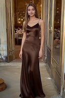 Brown Off The Shoulder Mermaid Satin Formal Dress With Draped Bow