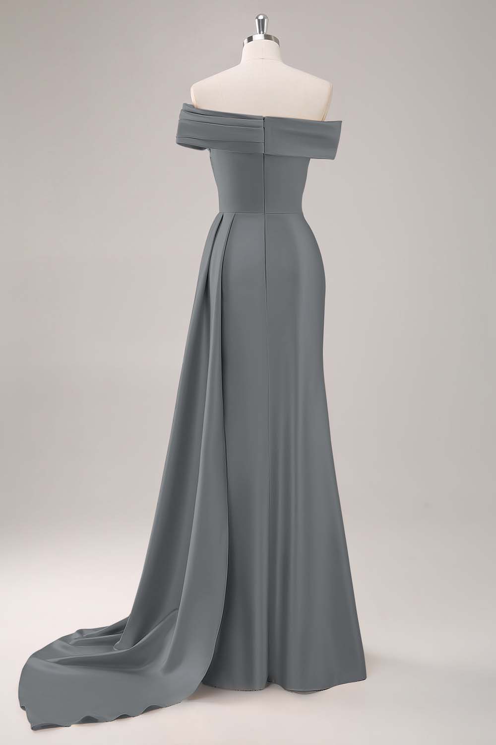 Off the Shoulder Satin Champagne Formal Dress with Drape