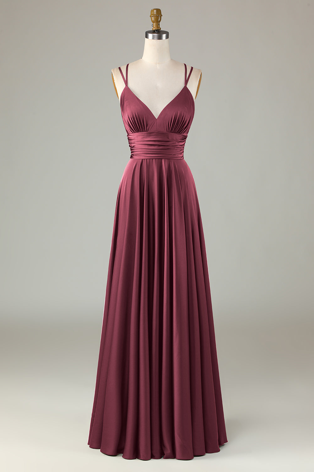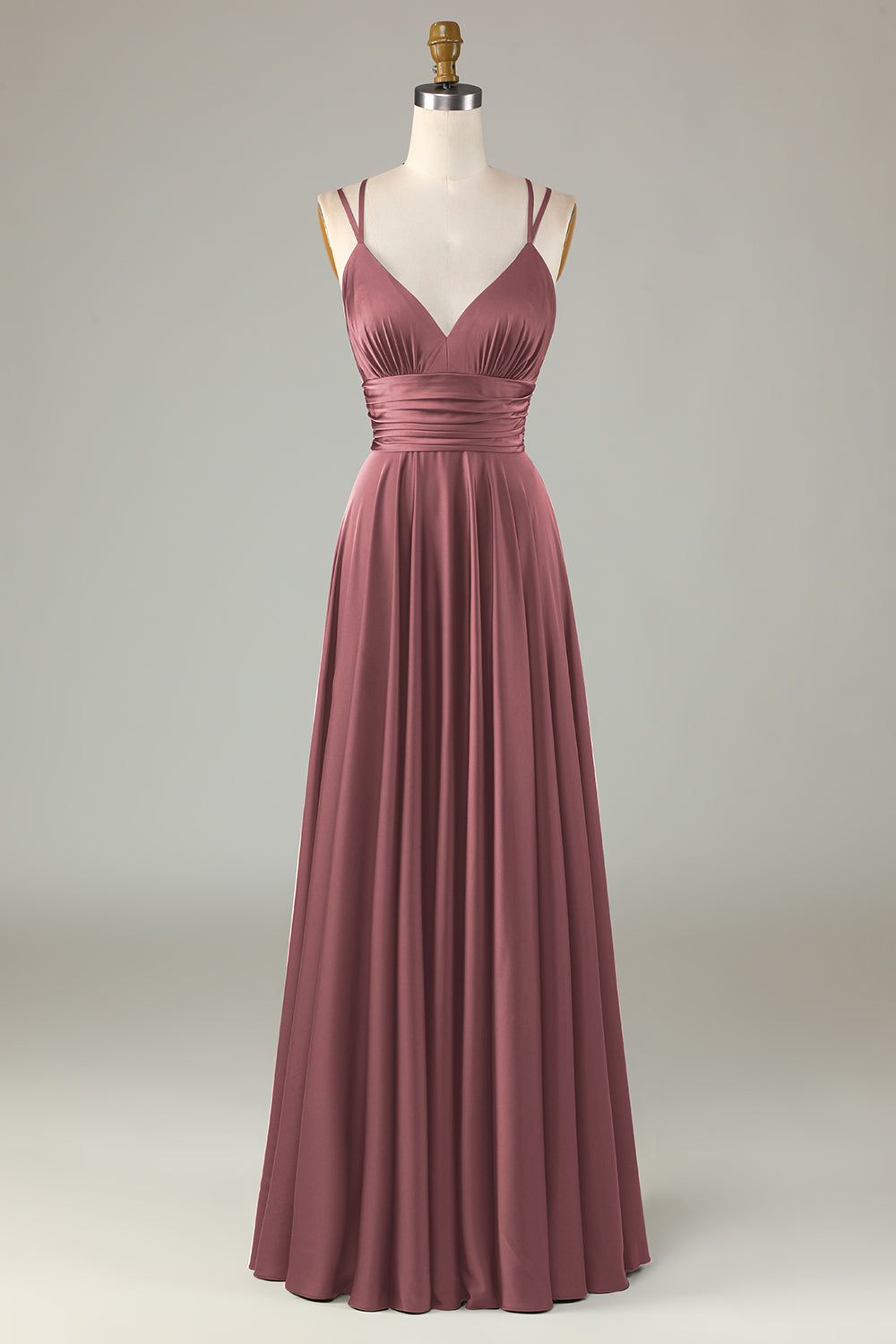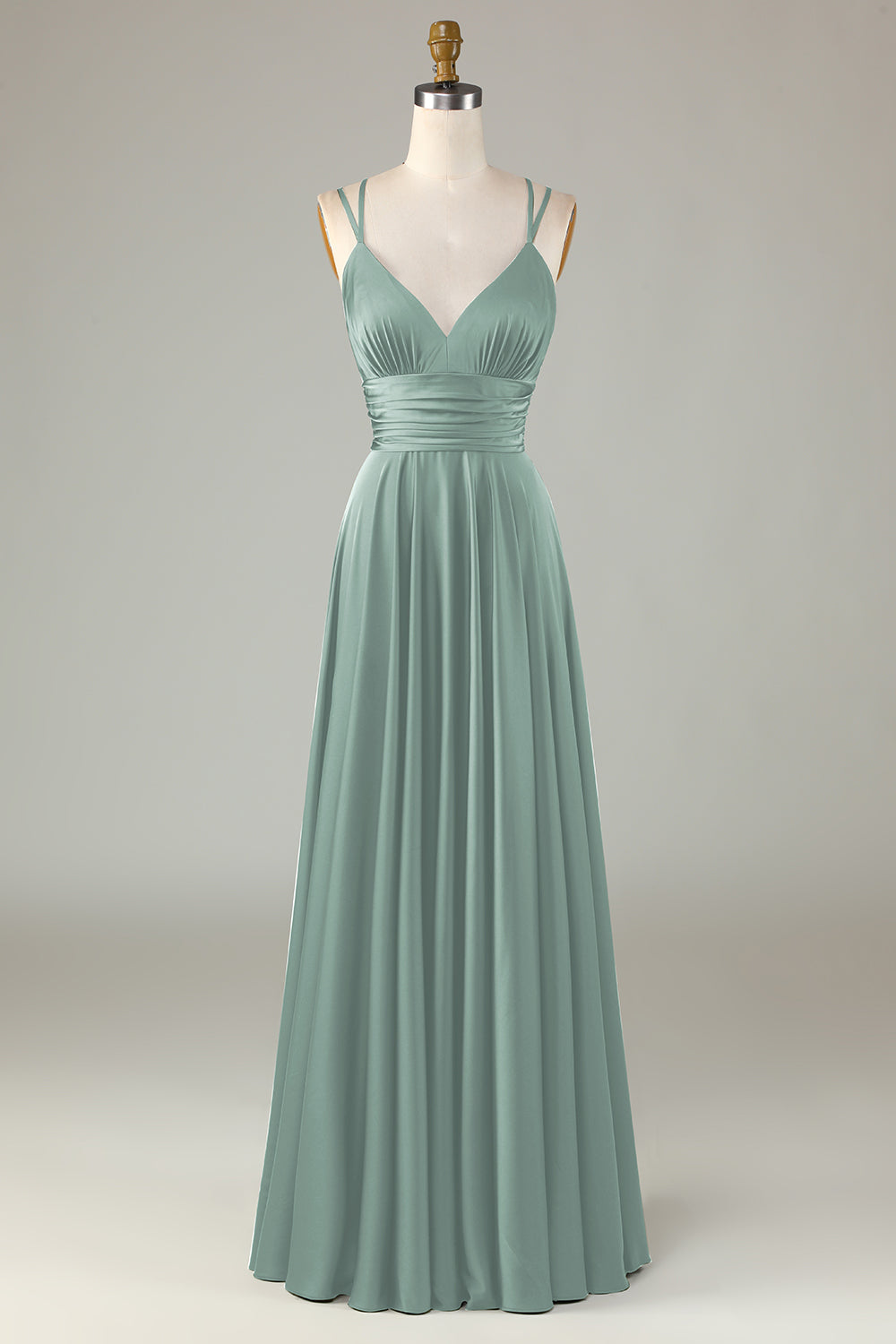 A-Line Sleeveless Olive Long Bridesmaid Dress