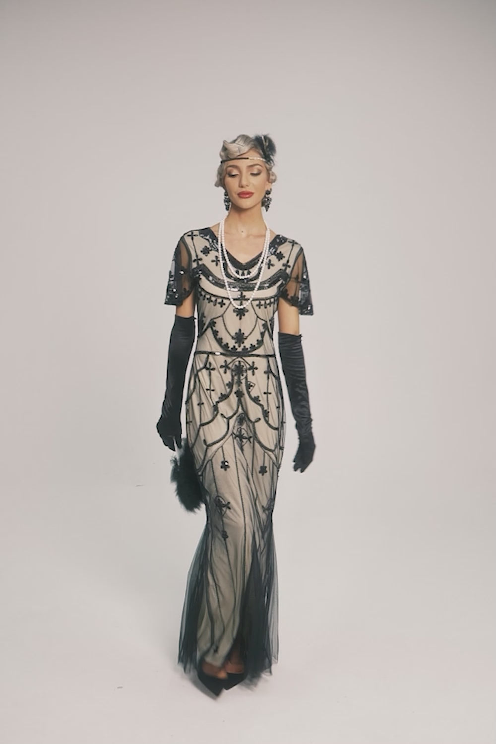 Classic Match: Pair this 1920s dress with special accessories will make you shining in a crowd.