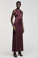 Burgundy Satin Mermaid V-Neck Long Formal Dress