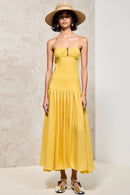 Strapless Yellow Blue Flower A Line Tiered Ruffle Corset Long Prom Dress with Slit