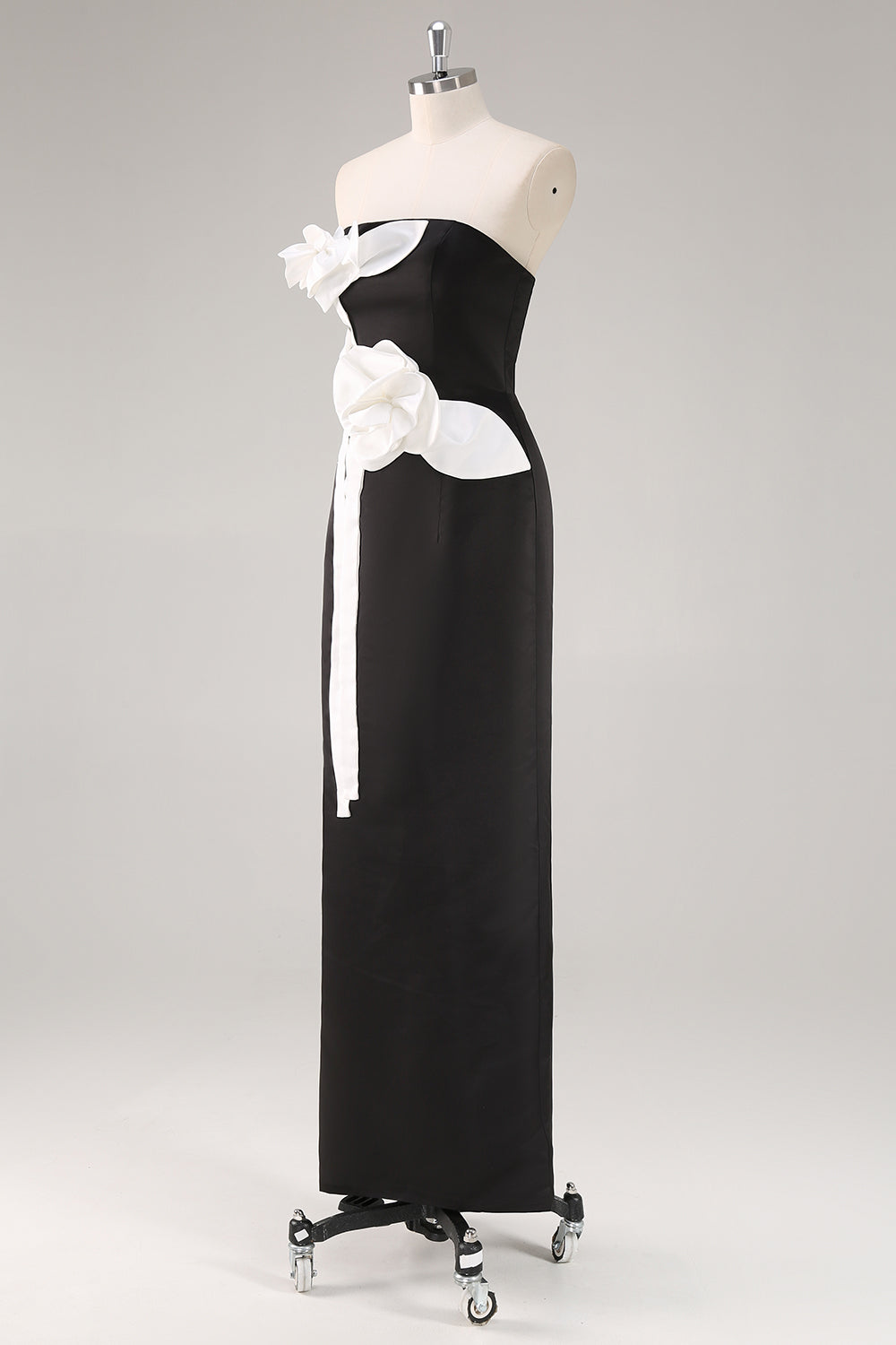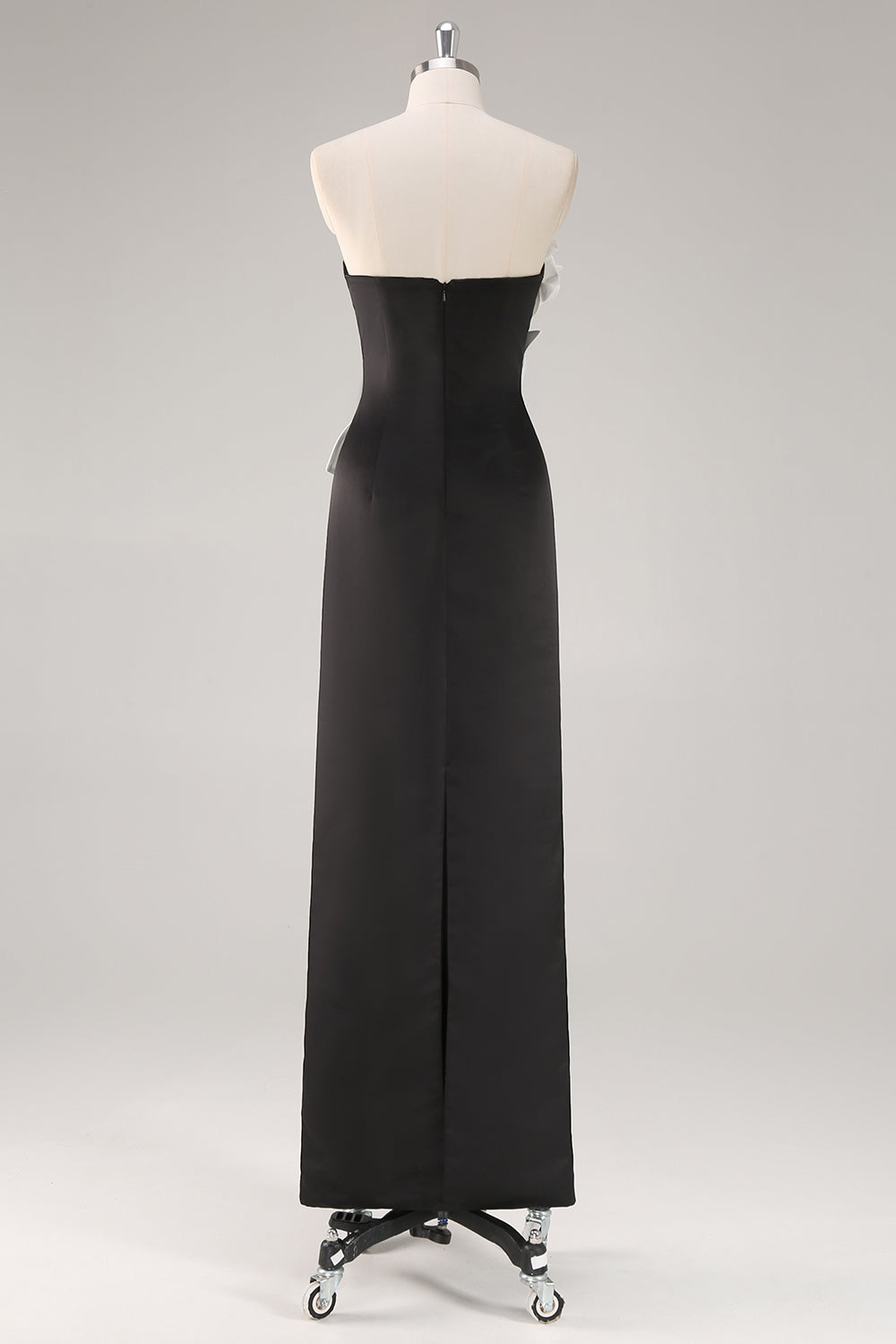 Black Sheath Strapless Wedding Guest Dress with 3D Flowers