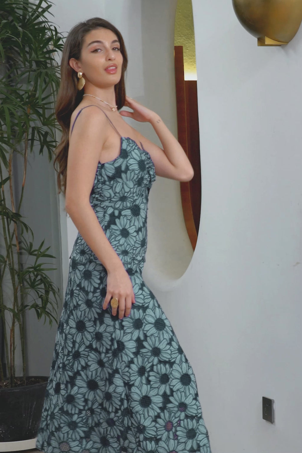 Blue Black Floral Maxi Boho Party Dress