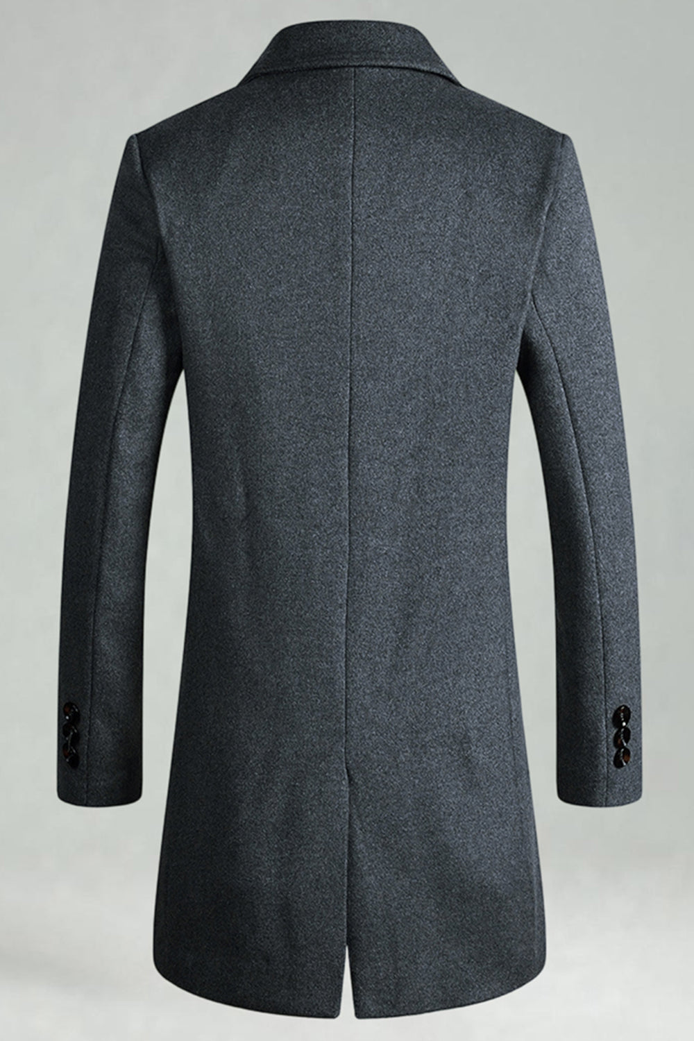 Peak Lapel Double Breasted Long Men's Grey Winter Coat