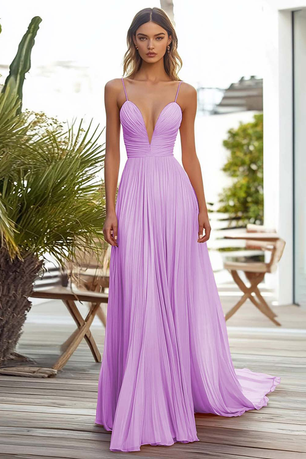Orange Ruffled A Line Chiffon Wedding Guest Dress