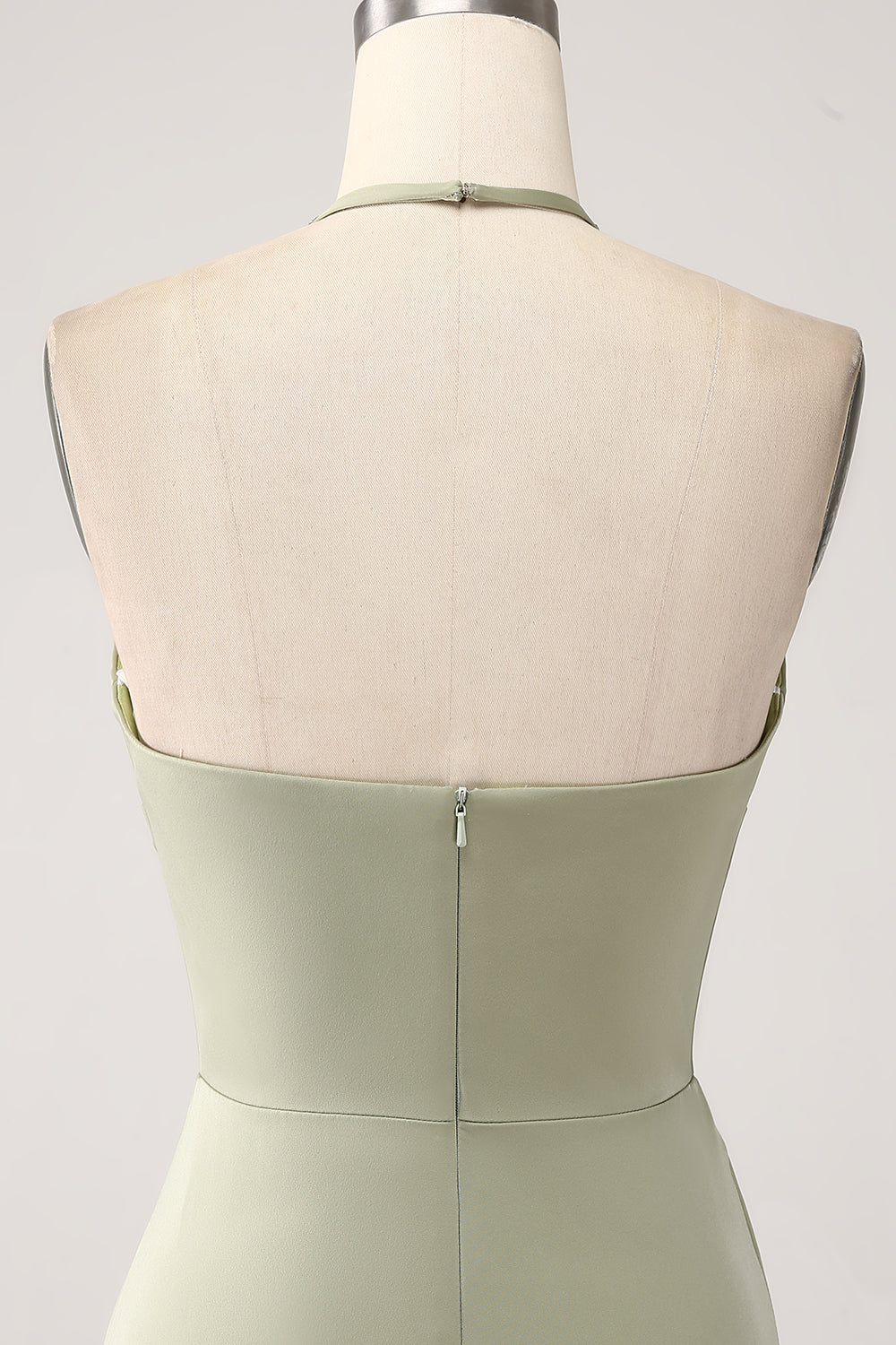Sheath Pistachio V-Neck Beaded Long Prom Dress With Slit