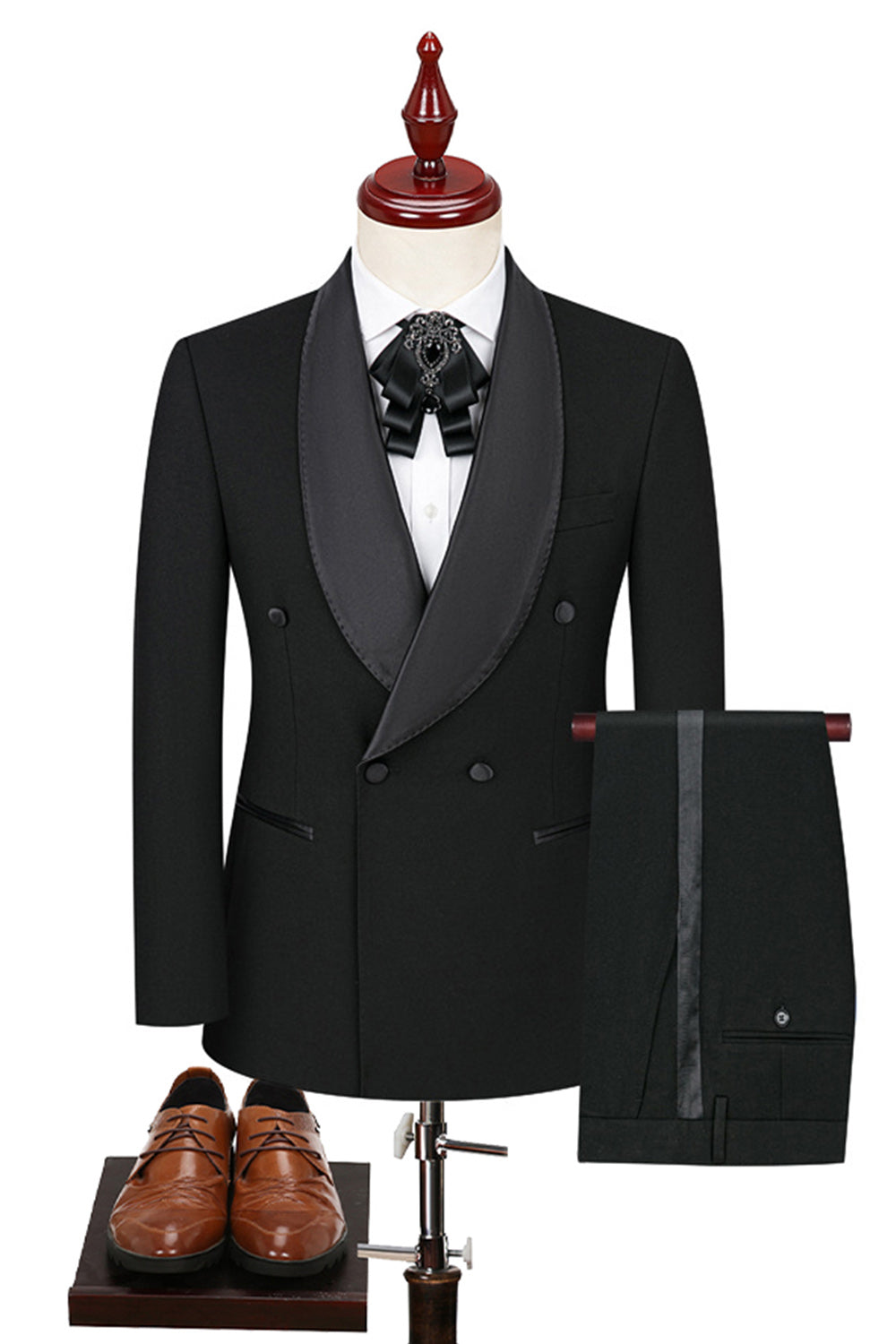 Black 2-piece Shawl Lapel Double-Breasted Men's Suits