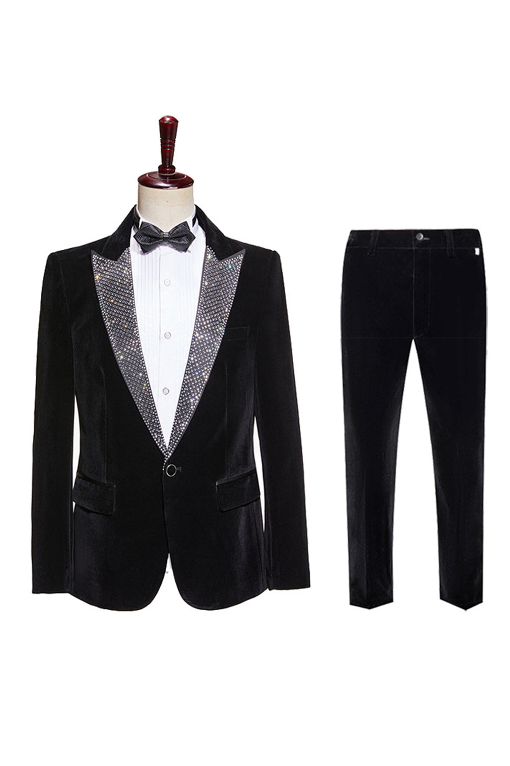 Sparkly Black 2-piece Peaked Lapel Velvet Men's Prom Suits