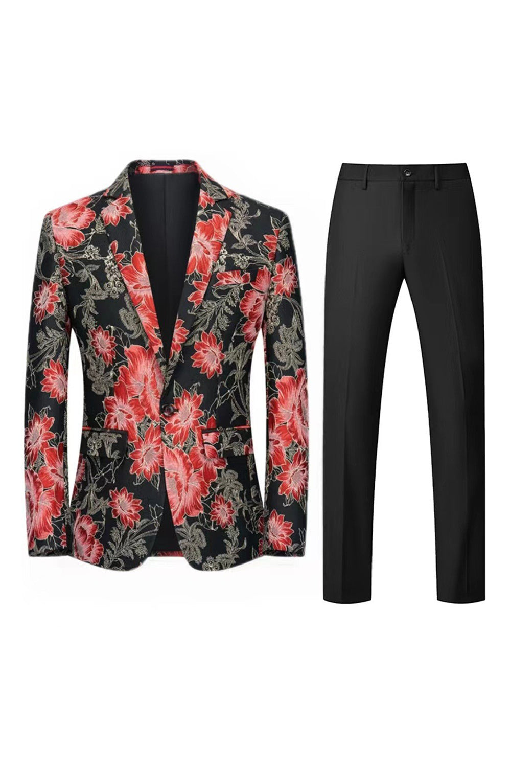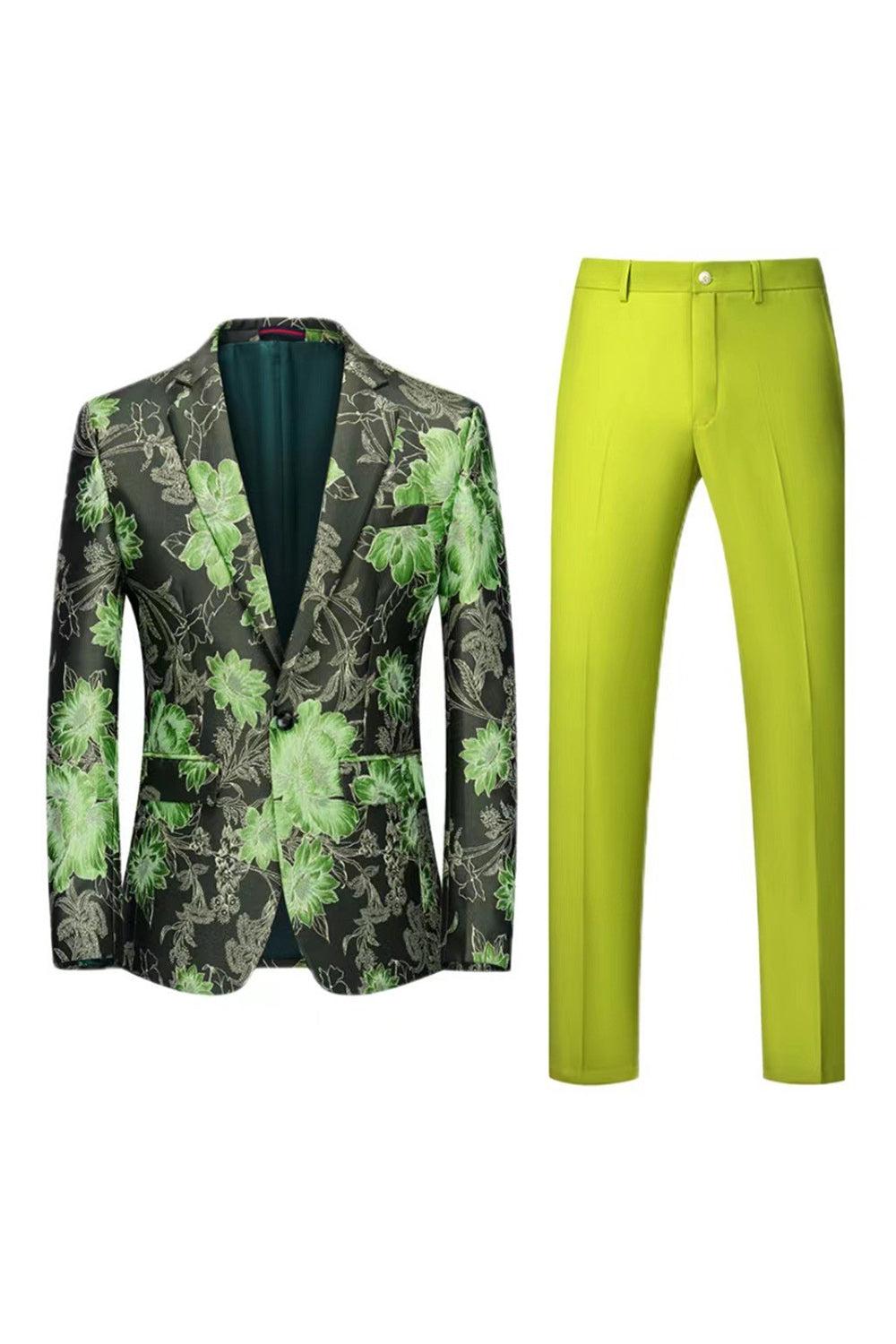 Yellow Floral 2-Piece One Button Notched Lapel Men's Prom Suits