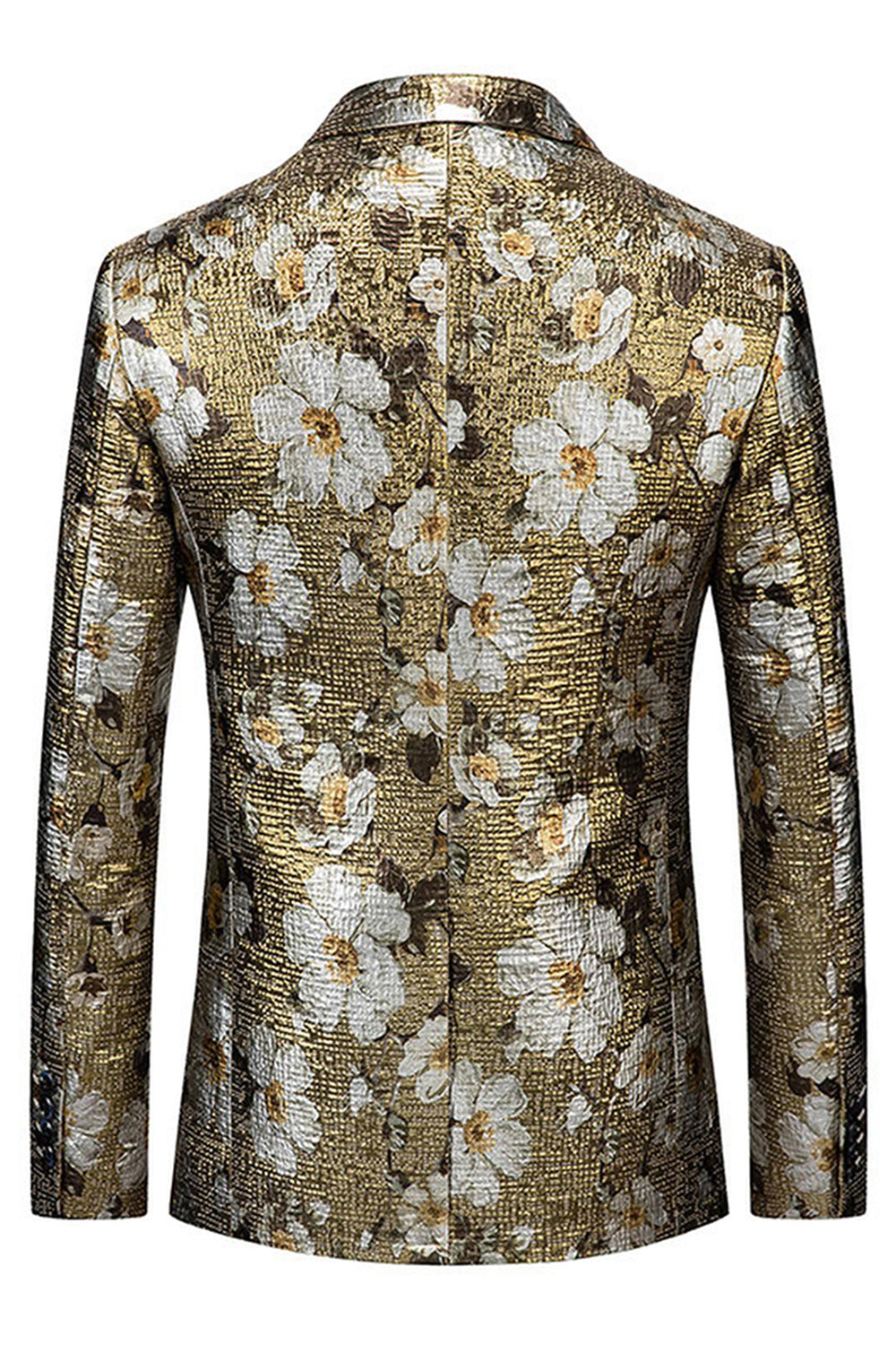 Golden Printed Floral One Button Prom Blazer