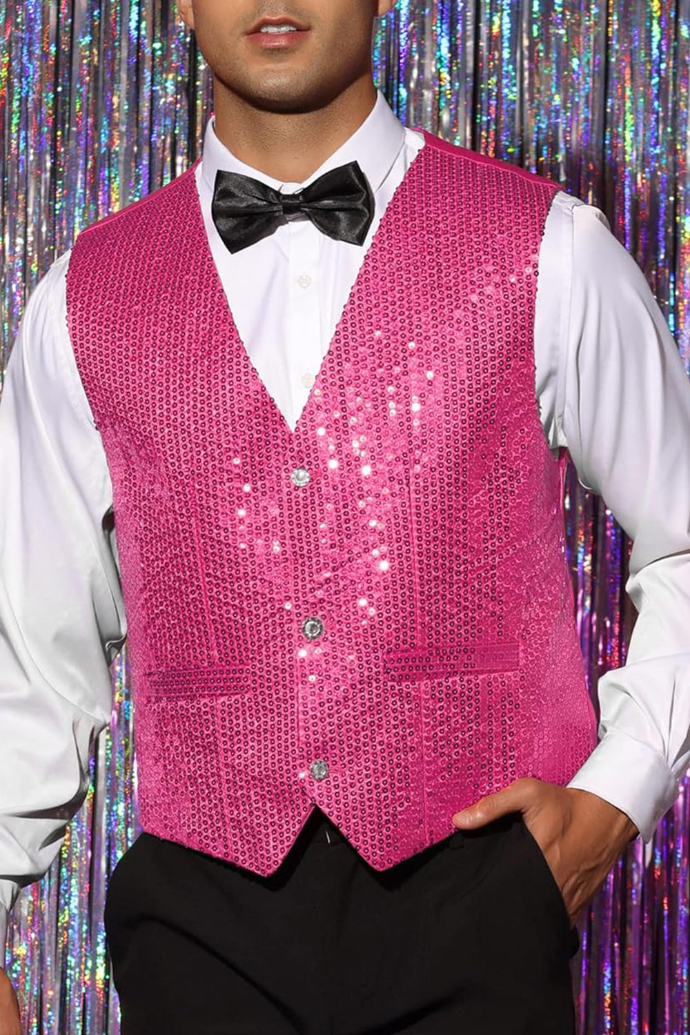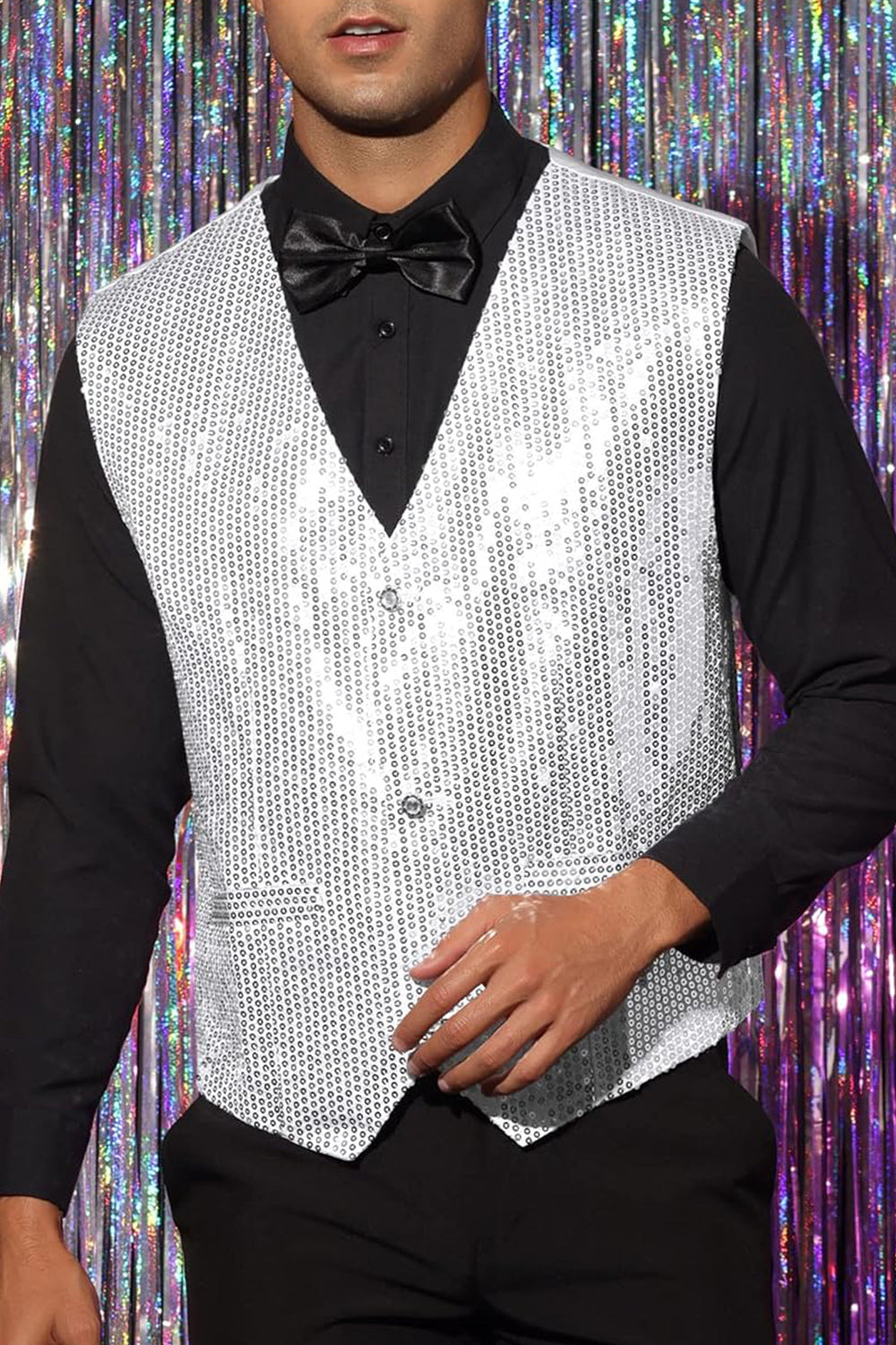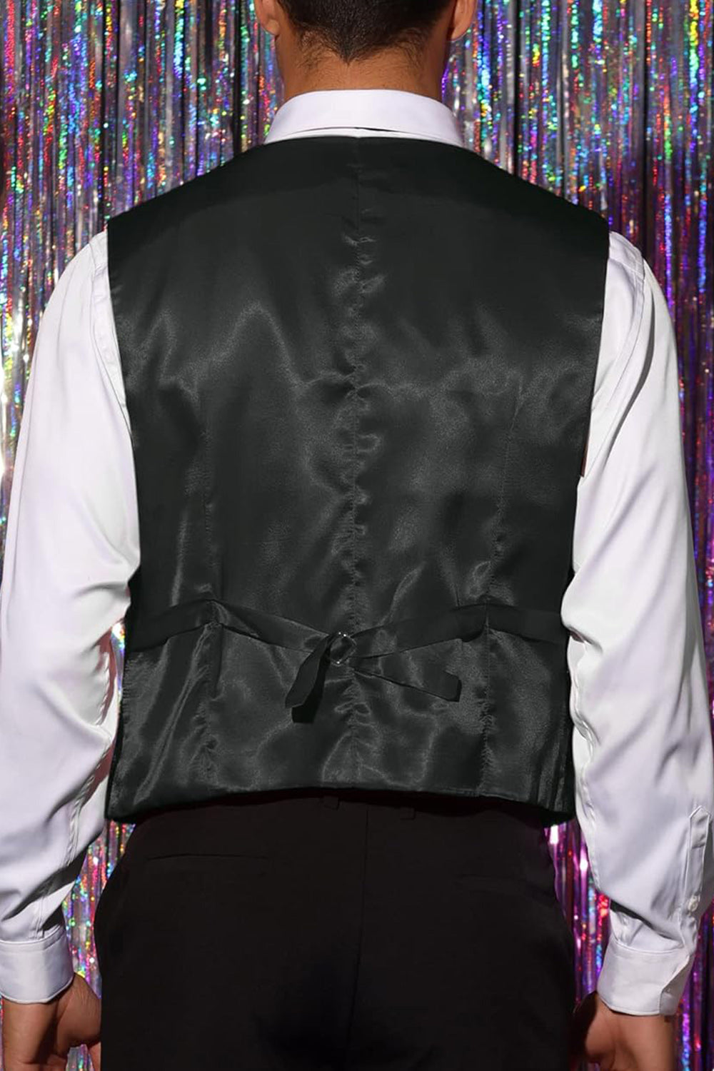 Sparkly Black Single Breasted V-Neck Men's Suit Vest with Sequins