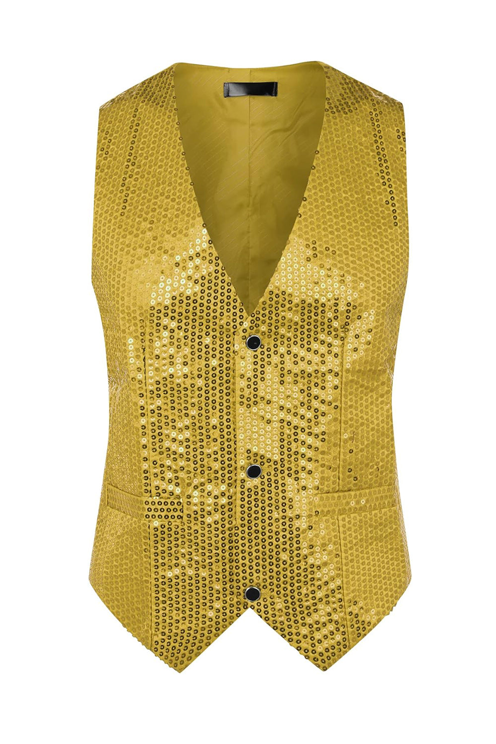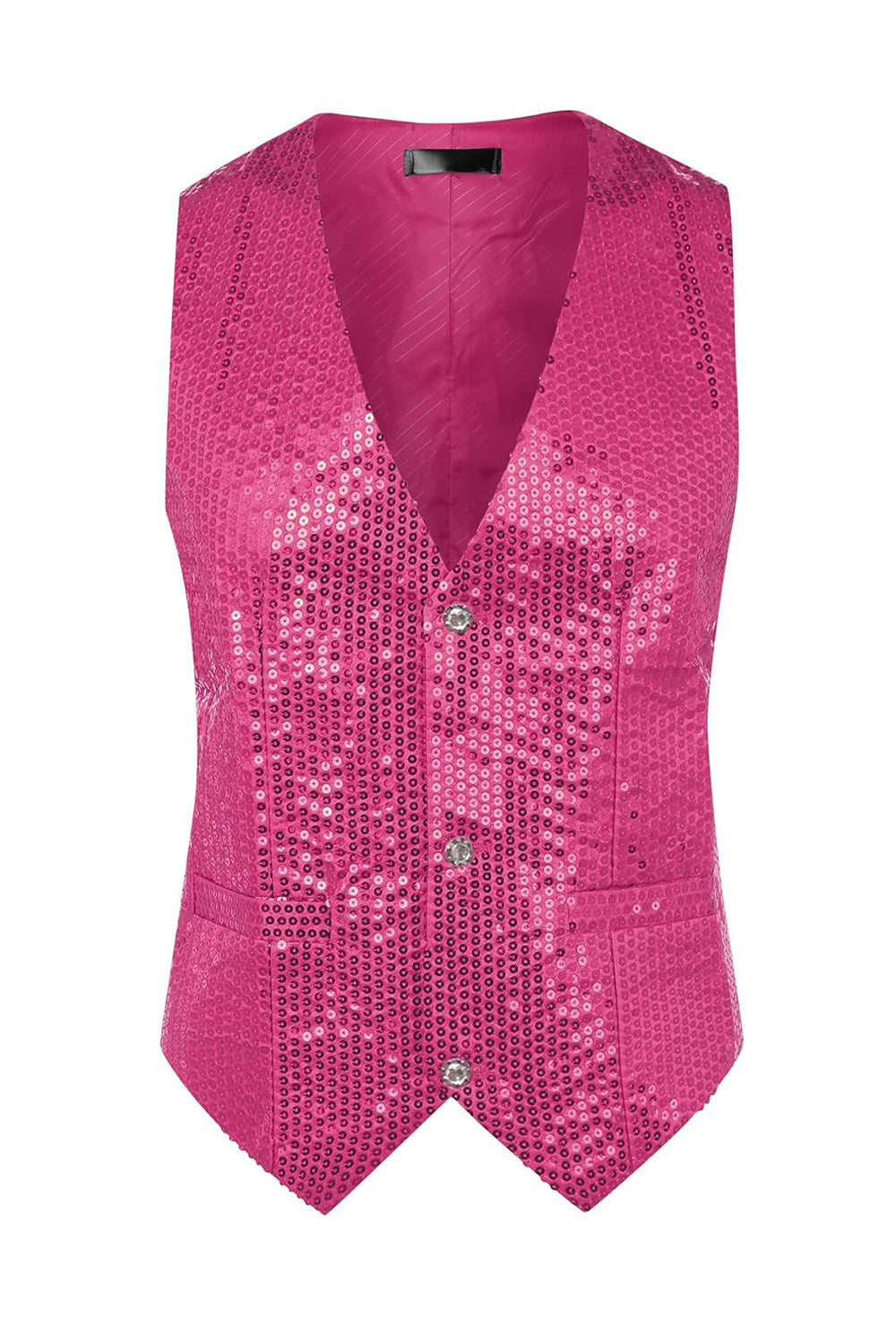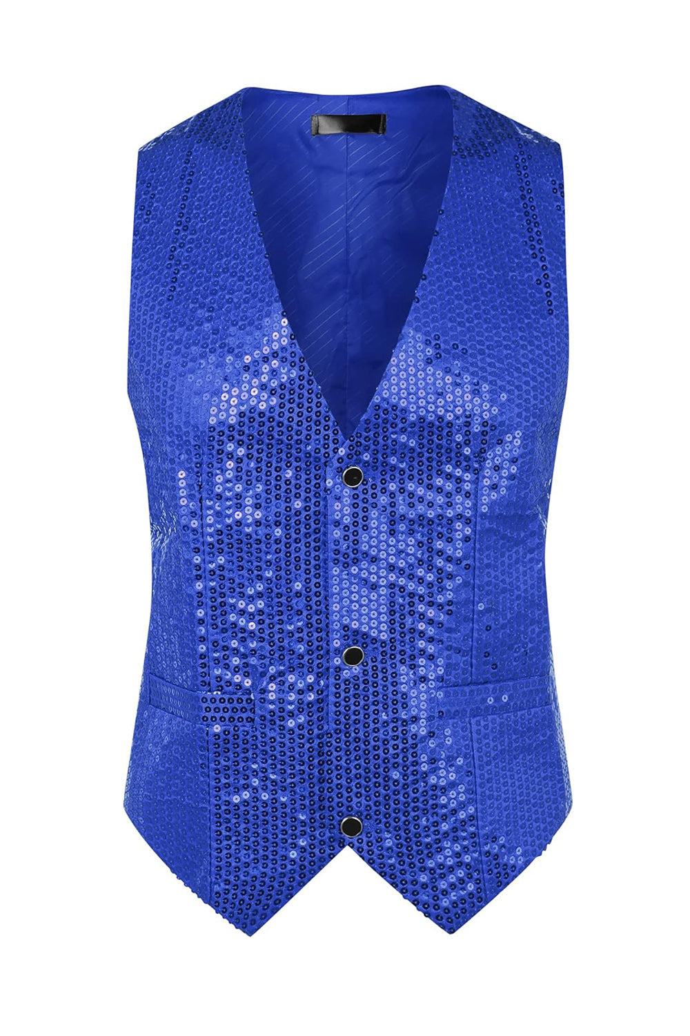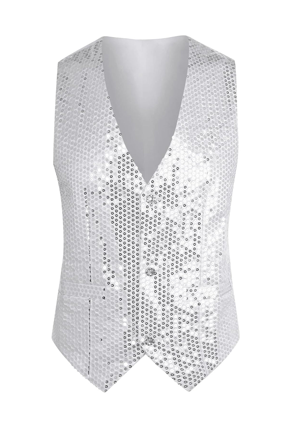 Sparkly Black Single Breasted V-Neck Men's Suit Vest with Sequins