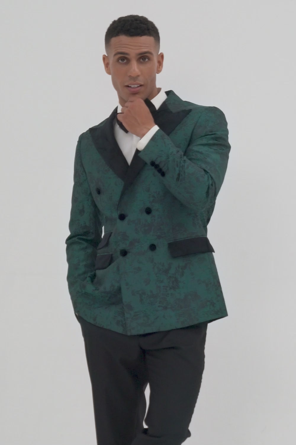 Dark Green Peak Lapel Jacquard 2 Pieces Single Breasted Men's Suits