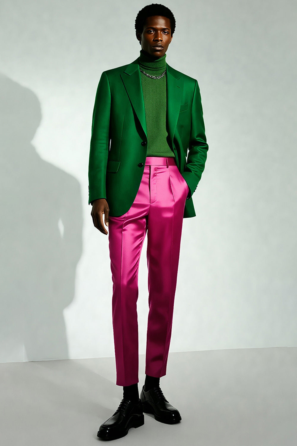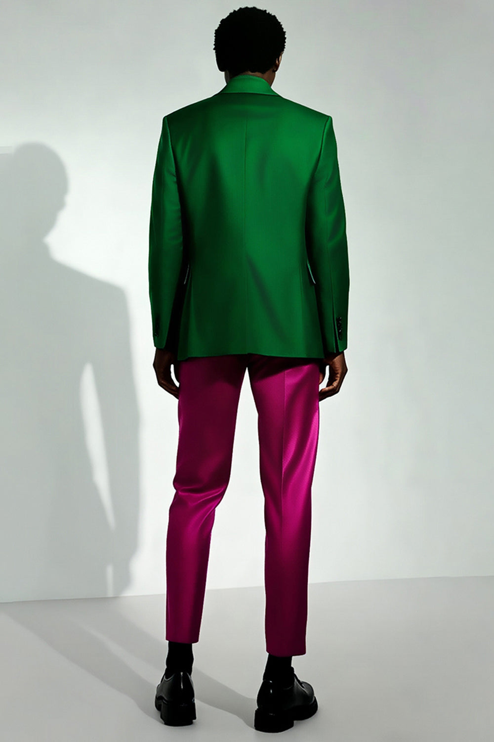 Dark Green Peak Lapel Single Breasted Men's Formal Blazer