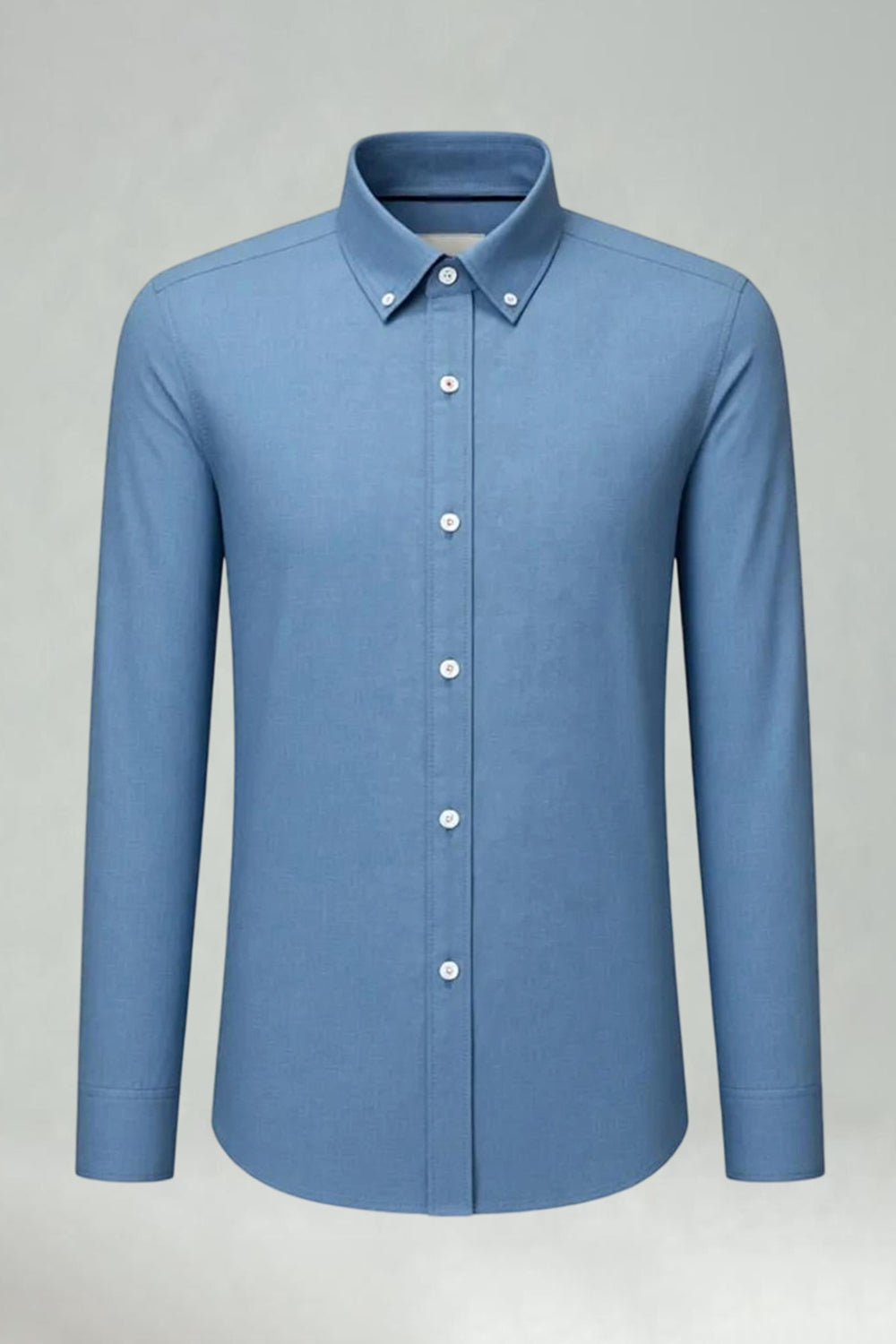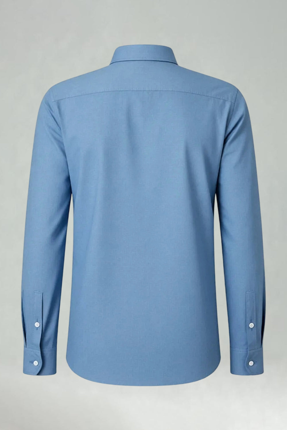 Blue Grey Slim Fit Long Sleeves Solid Men's Suits Shirt