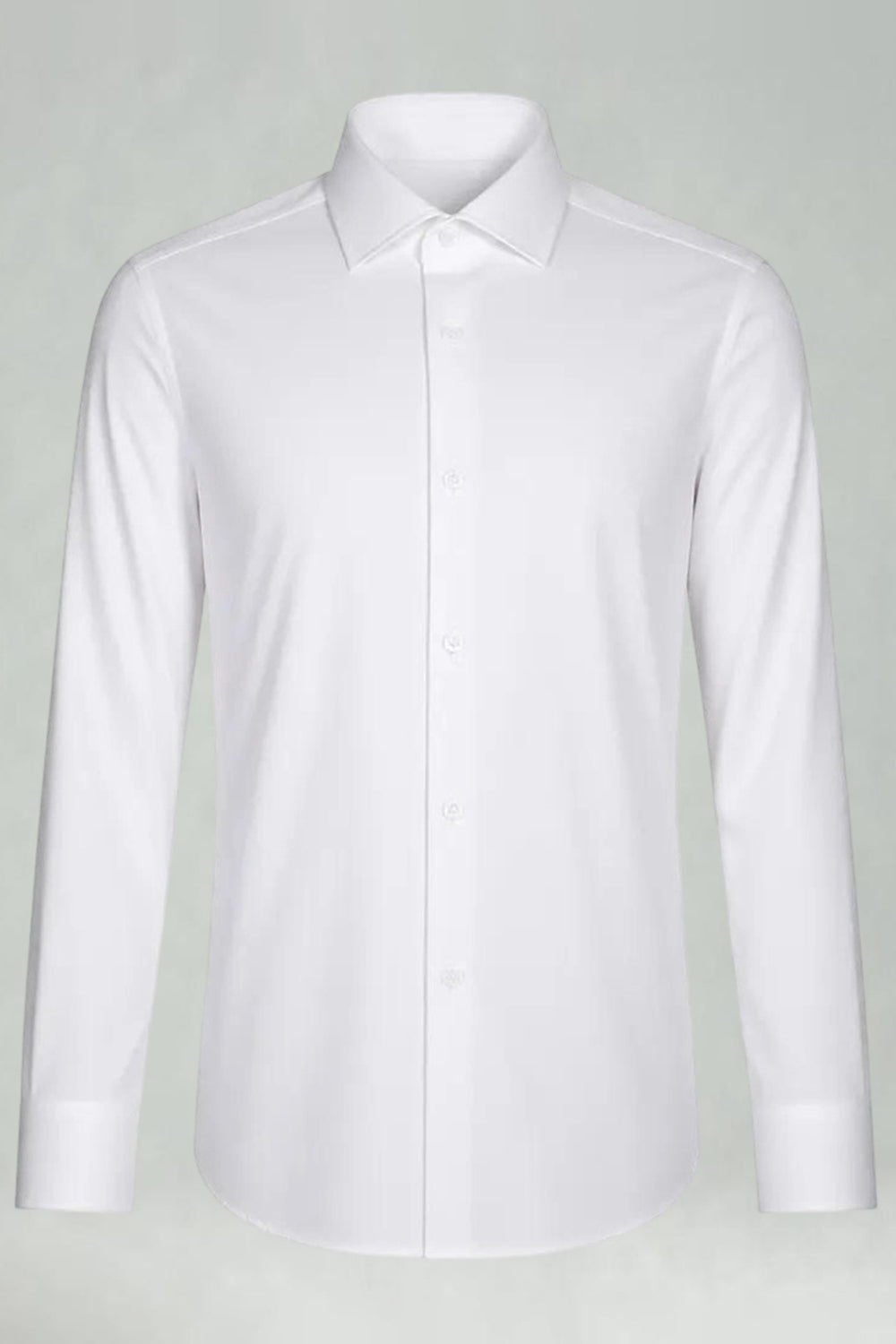 White Solid Slim Fit Long Sleeves Men's Suits Shirt