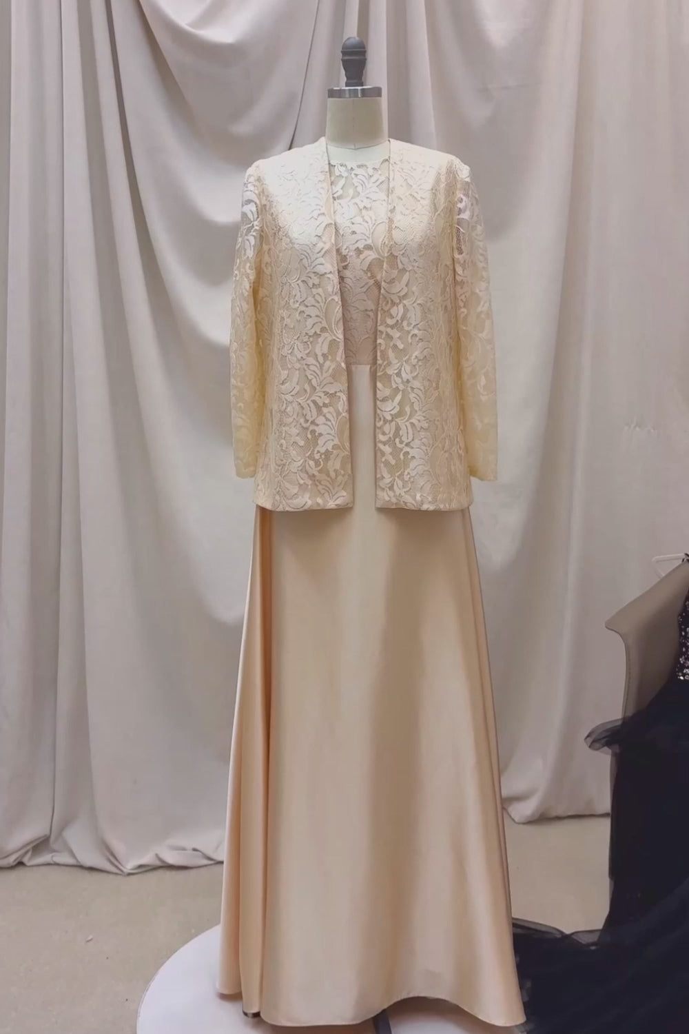 A-Line Champagne Chiffon 2-Piece Mother of the Bride Dress