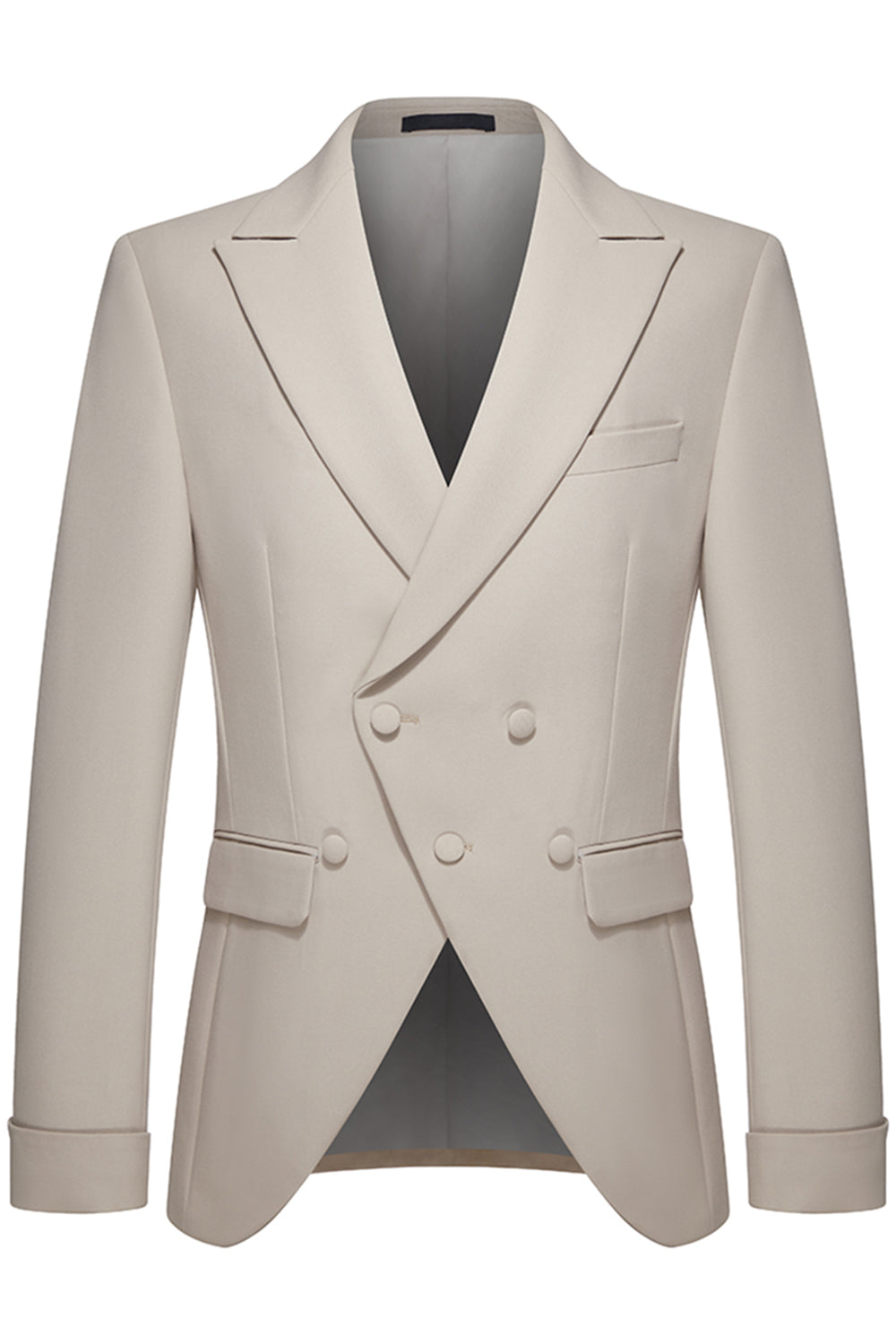 2 Piece Khaki Peak Lapel Slim Fit Men's Suits
