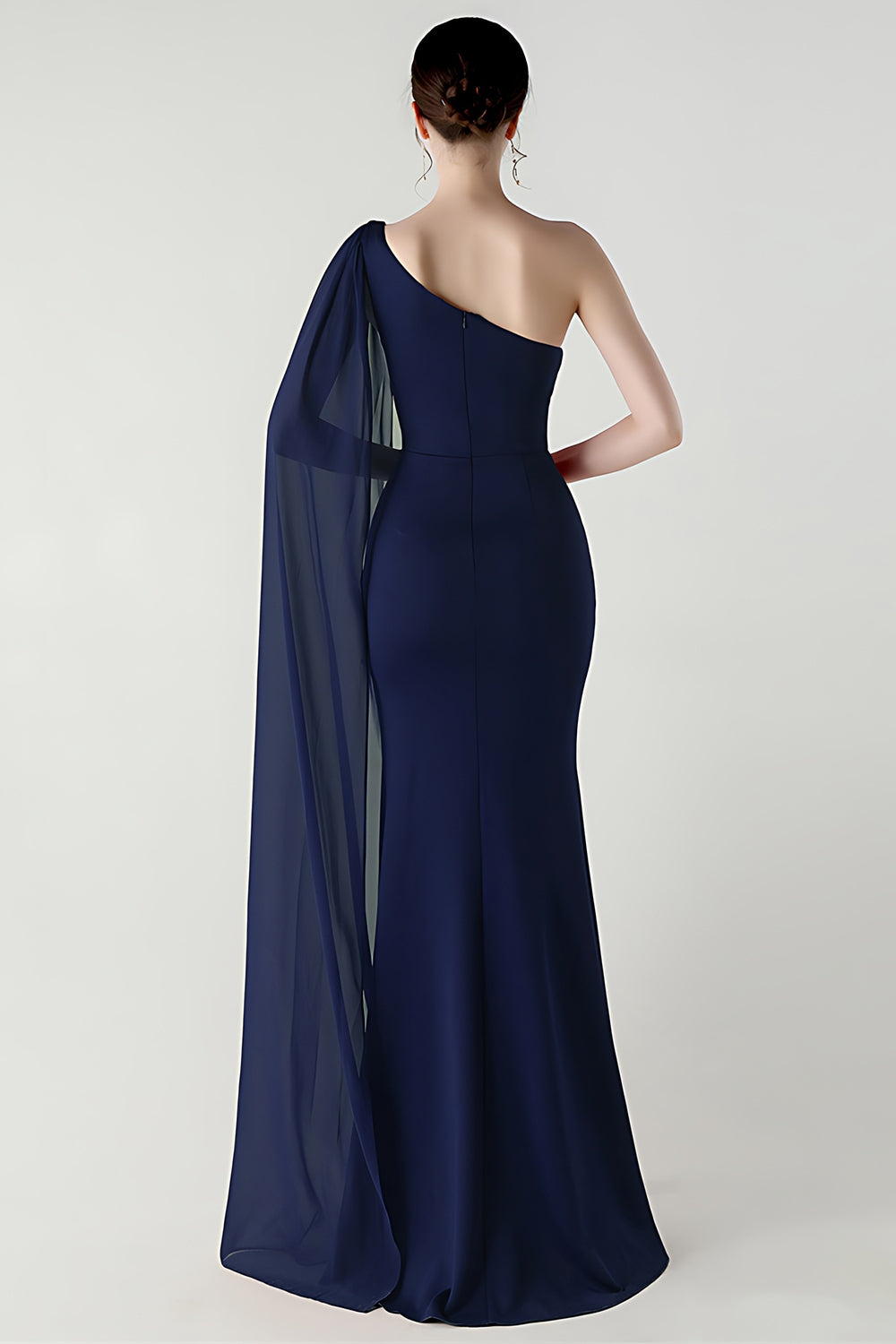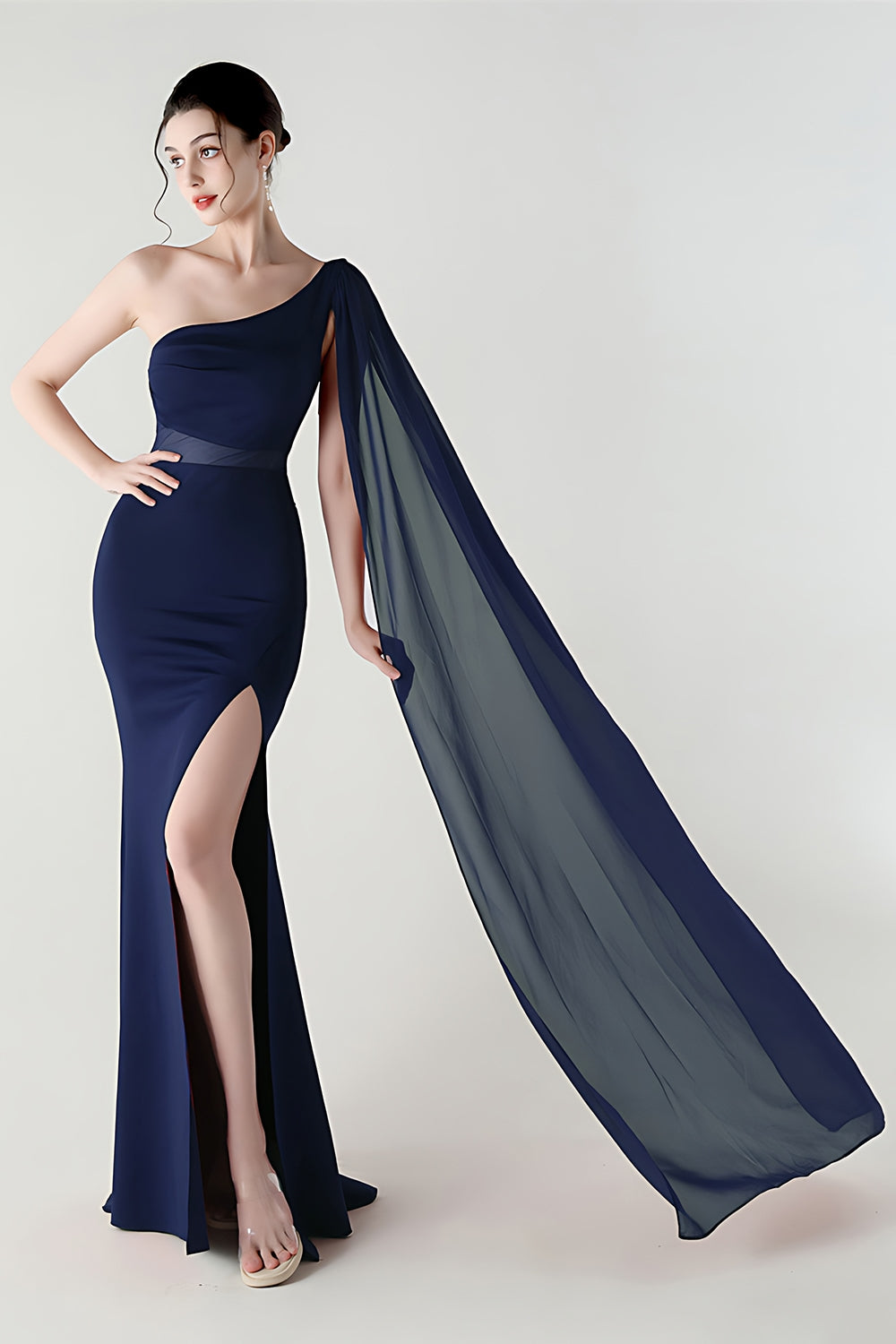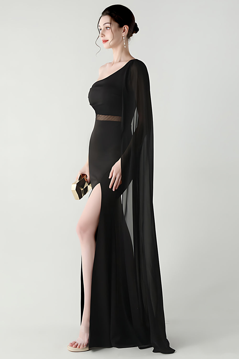 Black Mermaid One Shoulder Streamer Long Formal Dress with slit
