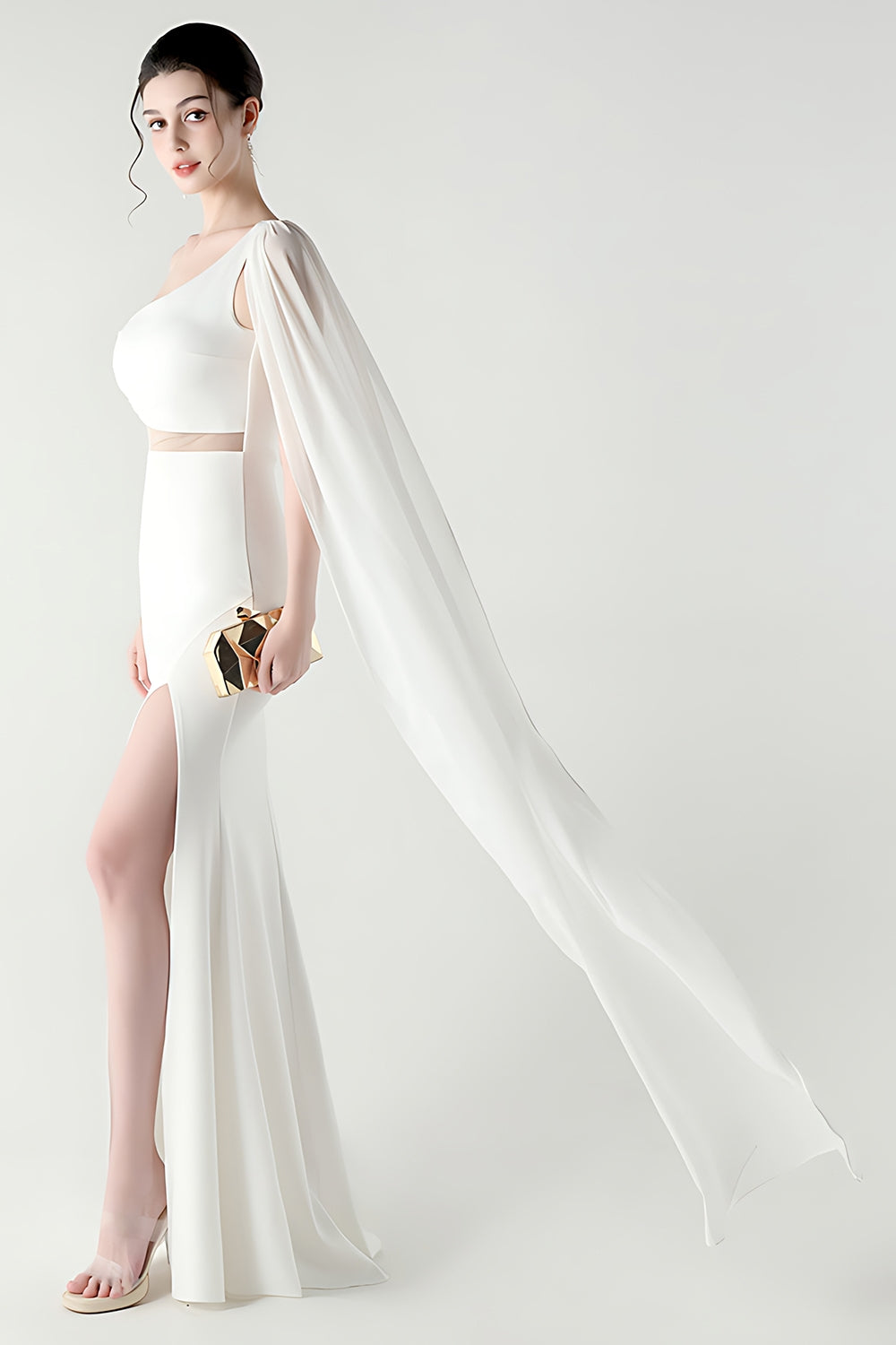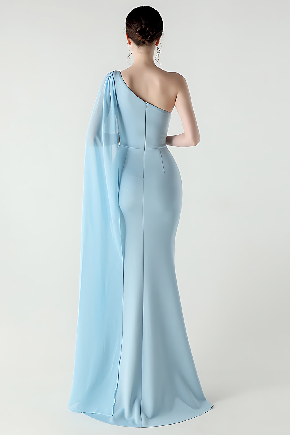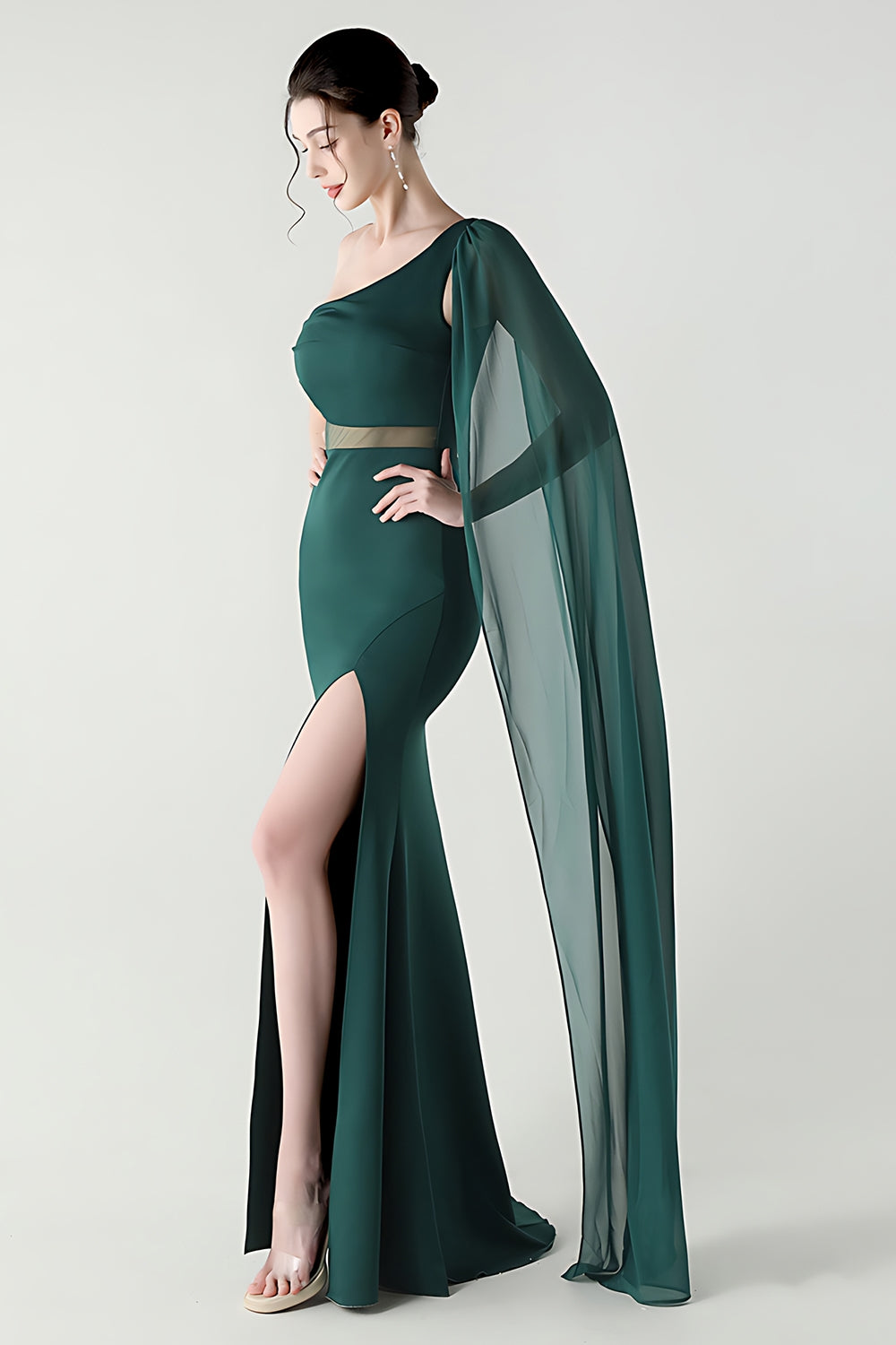 Black Mermaid One Shoulder Streamer Long Formal Dress with slit