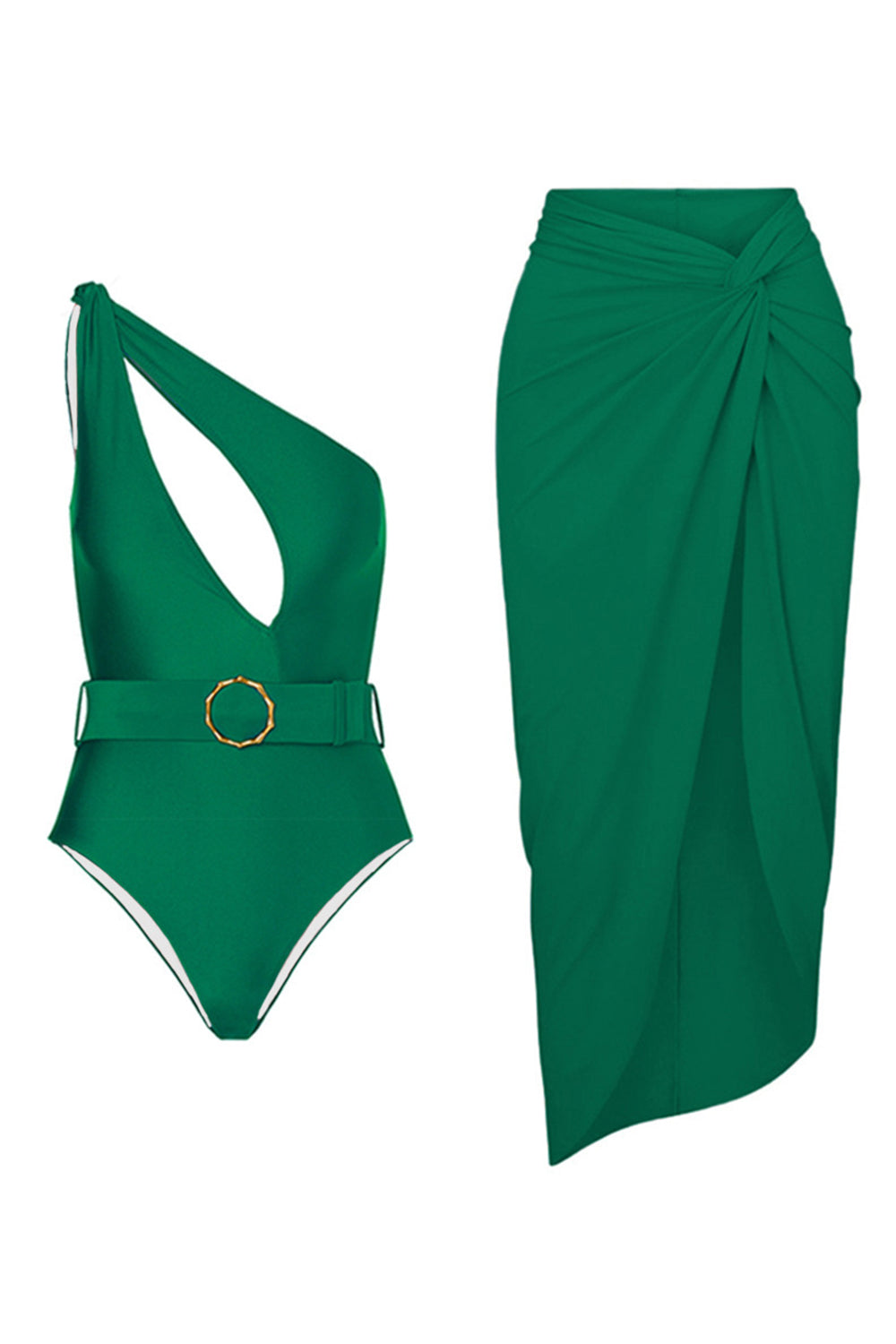 Print One Shoulder Golden Swimsuit