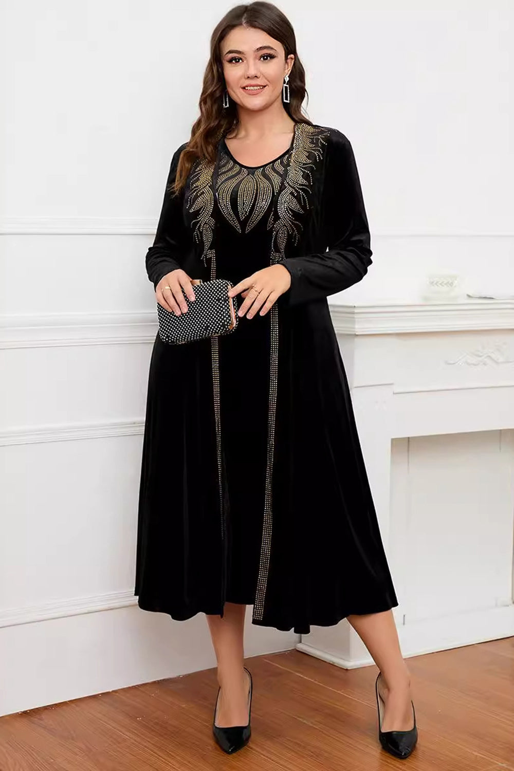 Black Round Neck Long Sleeves A-Line Mother of the Bride Dress