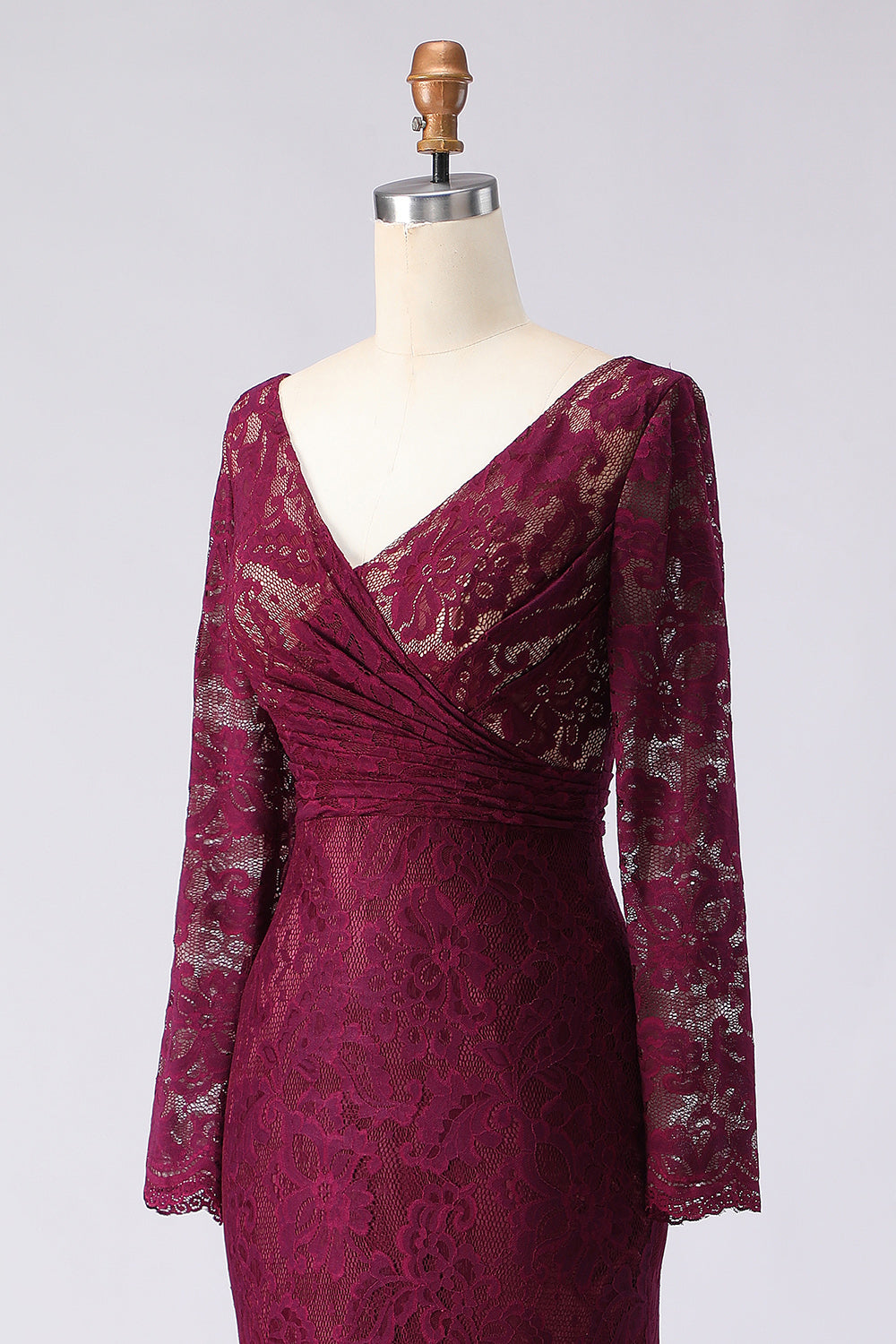 Cabernet Lace Mermaid V-Neck Appliqued Long Mother of the Bride Dress